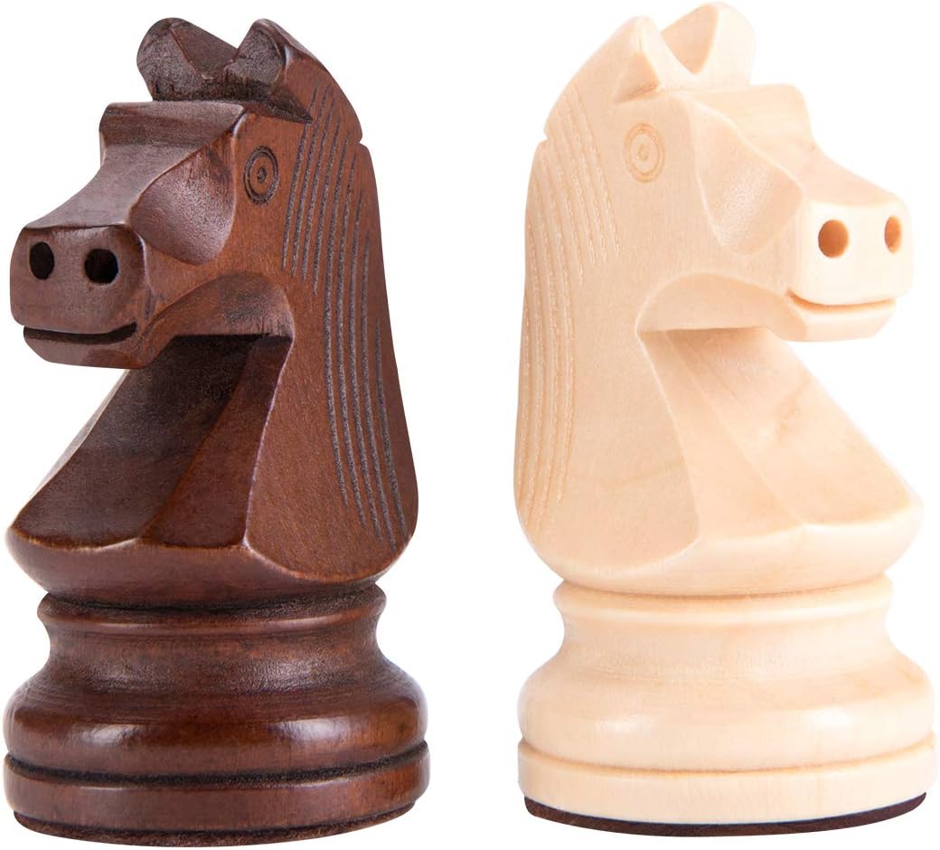 Piezas de Ajedrez de Madera AMEROUS - Rey de 3.75 pulgadas, Piezas de Ajedrez Pesadas Extra para Torneos con 2 Reinas Extras - Bolsa de Almacenamiento para Juego de Ajedrez o Reemplazo de Piezas Perdidas