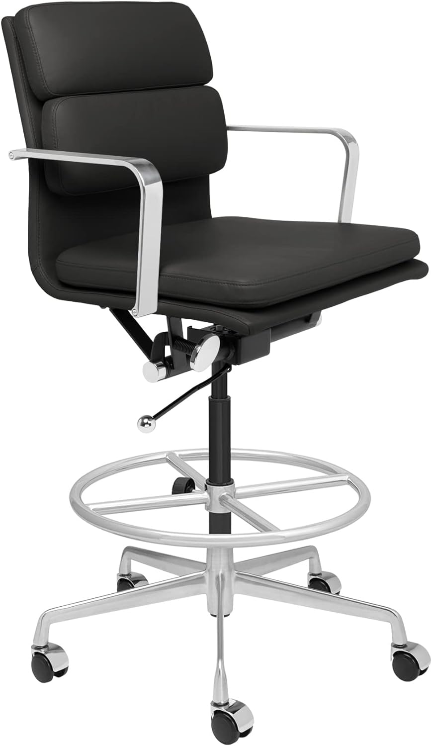Laura Davidson Furniture SOHO II Padded Drafting Chair for Standing Desks, Standing Desk Chair - Ergonomically Designed, Commercial Grade Draft Height, Arm Rest & Cushion, Made of Faux Leather, Black