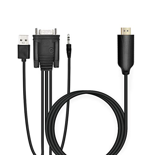 1.8m Male VGA to Male HDMI Converter Adapter cablewith 1080P HD Video Converter Cord with 3.5mm Audio Cable & USB Power Cable for Old PC to New TV/Monitor/Projector