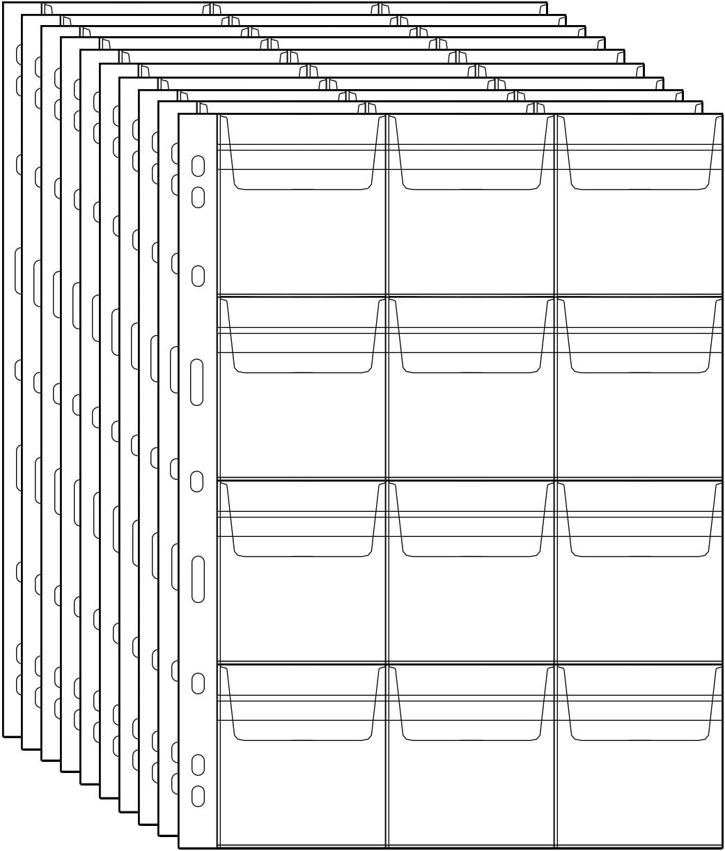 Coin Pocket Pages - Standard 9-Hole Coin Pocket Inserts Collecting Sleeves for Coins 10 Sheets CS03 Series (12 Pocket(63mm X 67mm Each Pocket), 10 Sheets)