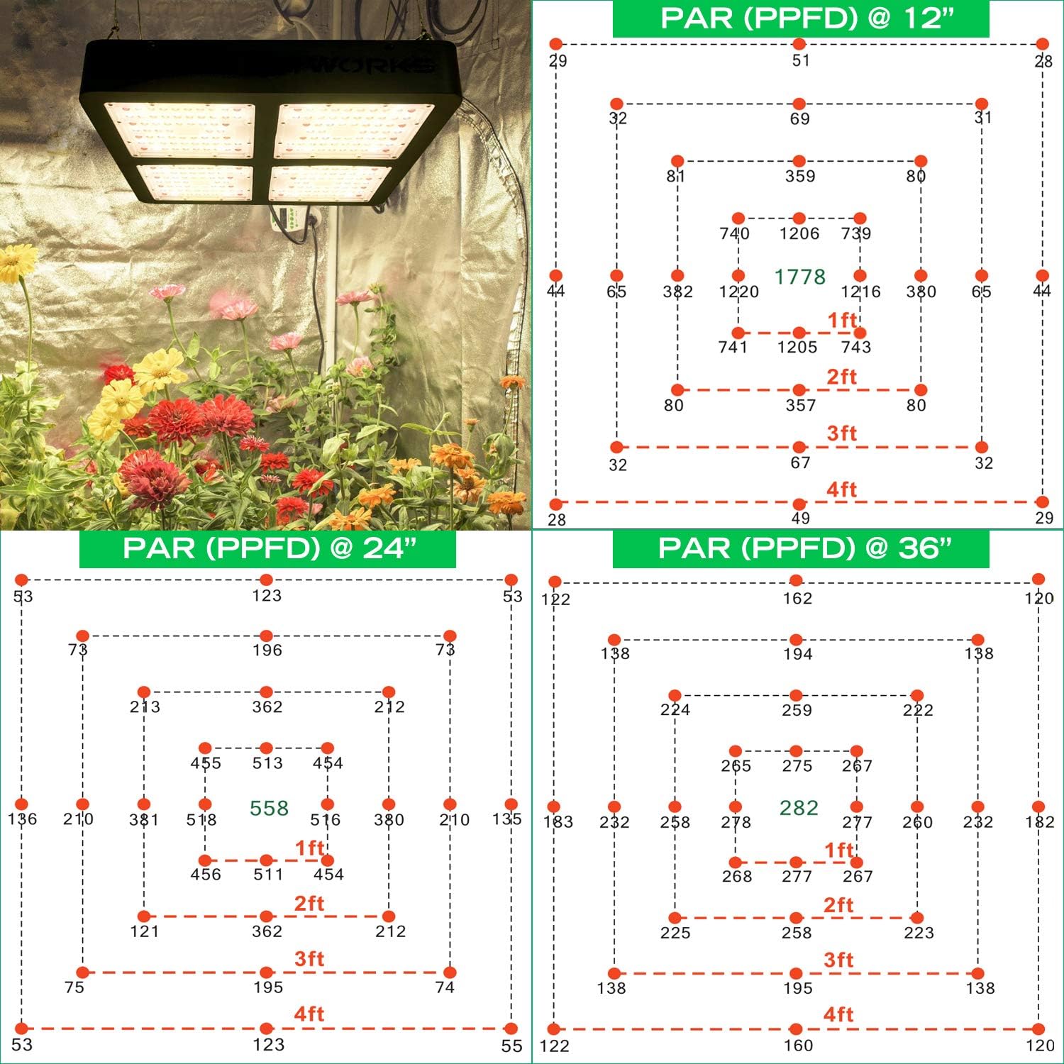 PARFACTWORKS RA2000 LED Grow Light, foco de luz de crecimiento de espectro completo - 4x4 - Invernadero hidropónico de flores para plantas de interior