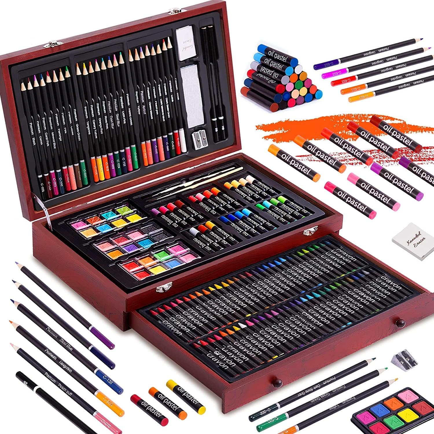 Color More 143 Piezas Deluxe Art Set,Juego de Pintura en Caja de Madera Portátil,Kit de Arte Profesional,Suministros de Arte para Adultos, Adolescentes y Artistas,Pintura,Dibujo y Suministros de Arte