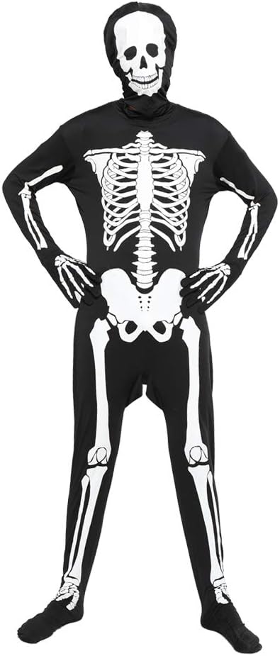 EraSpooky Halloween Men Skeleton Jumpsuit Costume Luminous Skull Skin Full Body Tights Suit