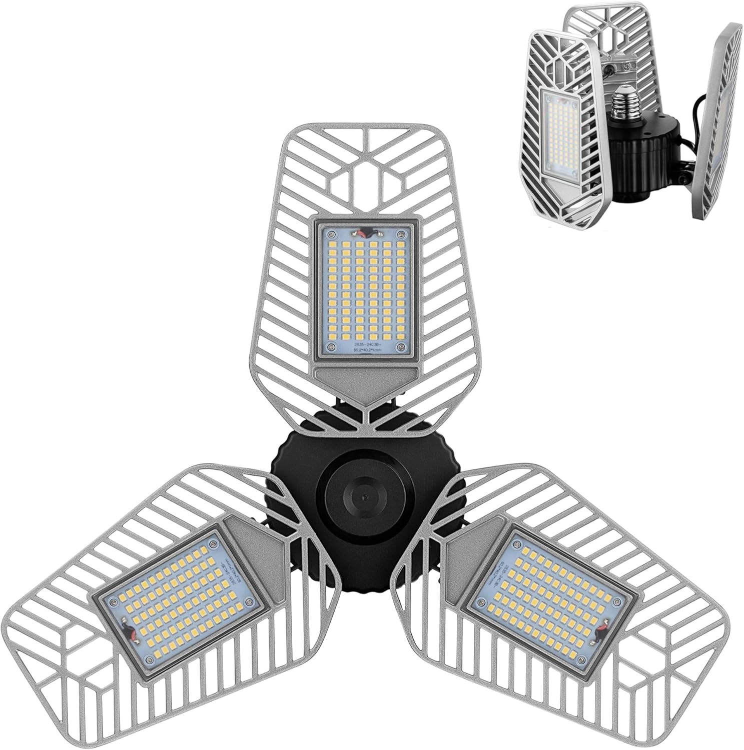LED Garage Lights, Deformable Ceiling Light 9000 Lumens, 82W CRI 80 Shop Light, Adjustable Garage Lights, Led Lighting (No Motion Activated) (1-Pack)