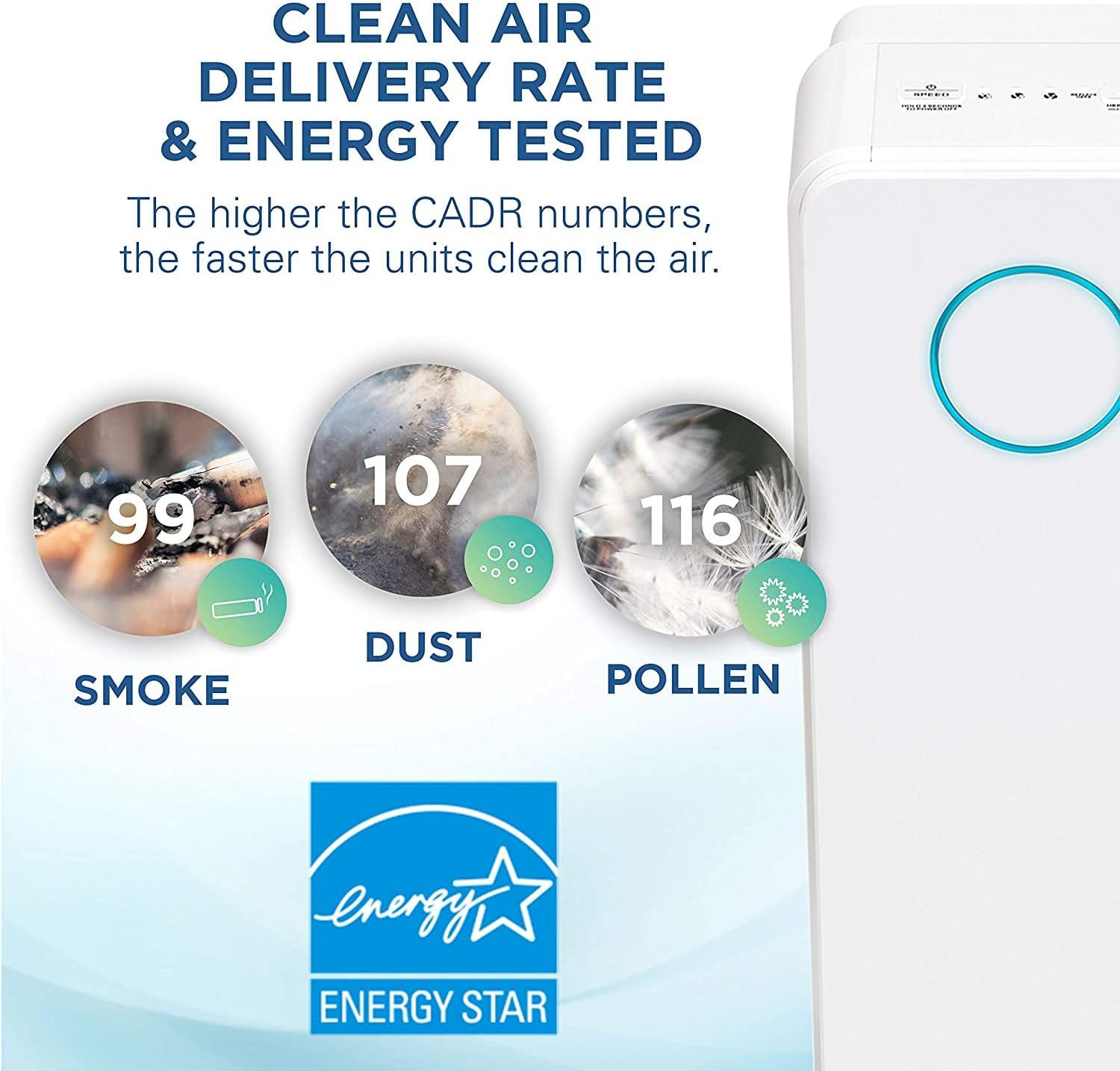 5-in-1 air purifier for home - electrostatic hepa media air filter reduces up to 99.97% of harmful germs, dust, pollen, pet dander, mold spores, and other allergens as small as .3 microns from the air