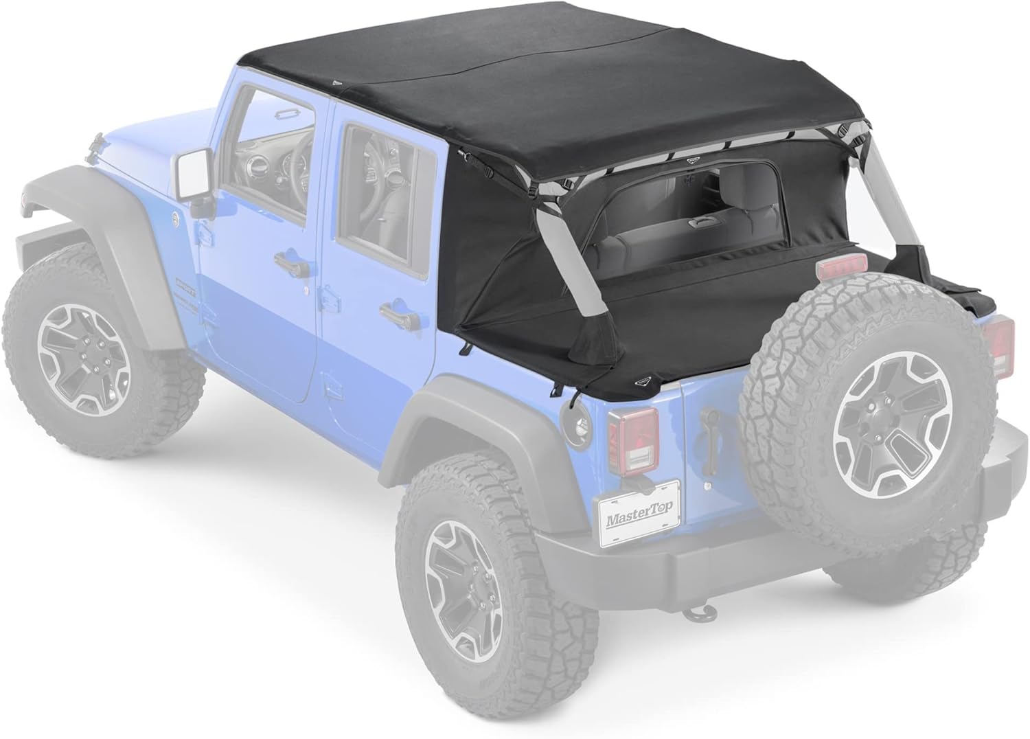 MasterTop 3-Piece Ultimate Summer Soft Top Combo - Bimini Soft Top, Wind Stopper Cab Curtain, and Tonneau Deck Cargo Cover - Fits Jeep Wrangler JK JKU Unlimited 4-Door 2010-2018 - Black MasterTwill