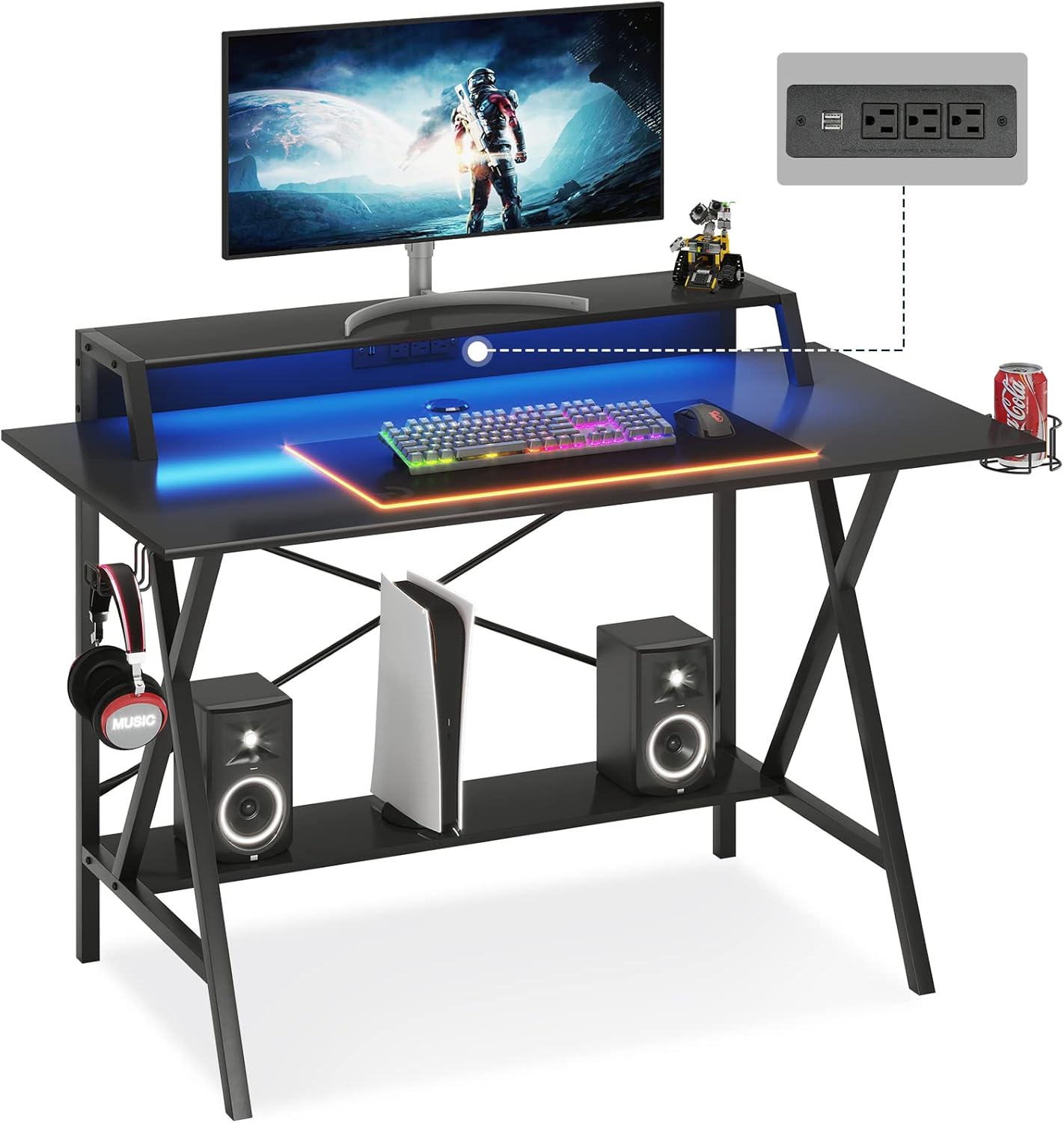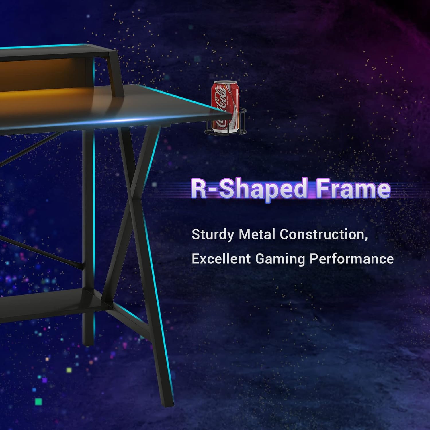 Escritorio para juegos Sedeta, escritorio para jugadores de 47 pulgadas, escritorio para computadora con puerto USB y toma de corriente, mesa para juegos, escritorio para estación de trabajo de juegos con estante para PC, portavasos y gancho para auriculares, escritorio para oficina en casa, negro