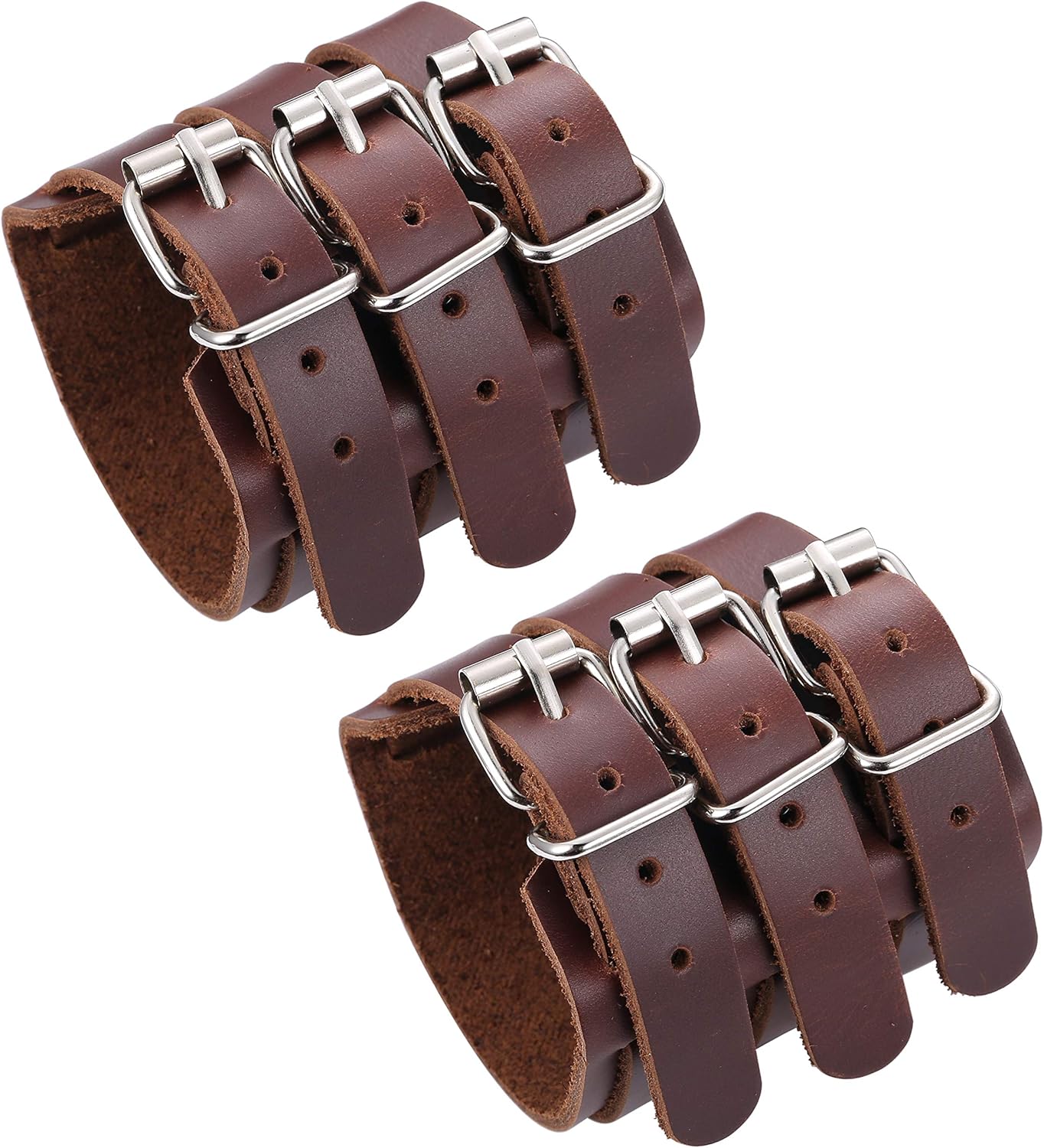FIBO STEEL Mens Leather Wide Band Handmade Triple Strap Cuff Medieval Wrap Gauntlet Wristband Buckle Fastening Arm Armor Cuff