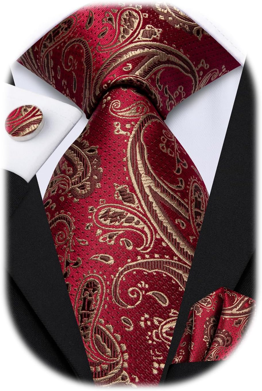 Hi-Tie Silk Paisley Ties for Men Necktie Pocket Square Cufflinks Set Foral Tie Sets Formal Business
