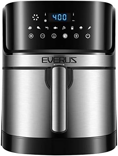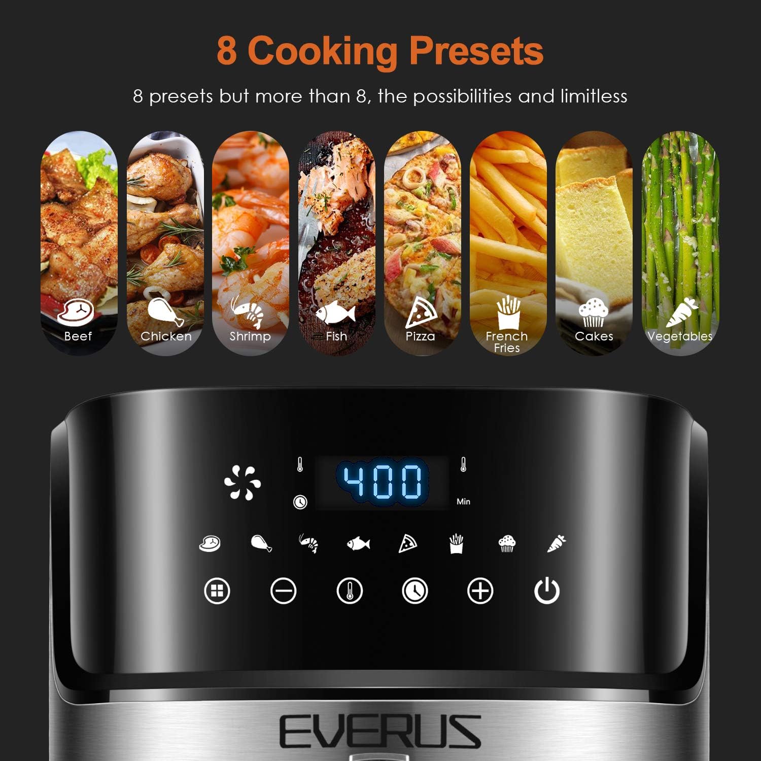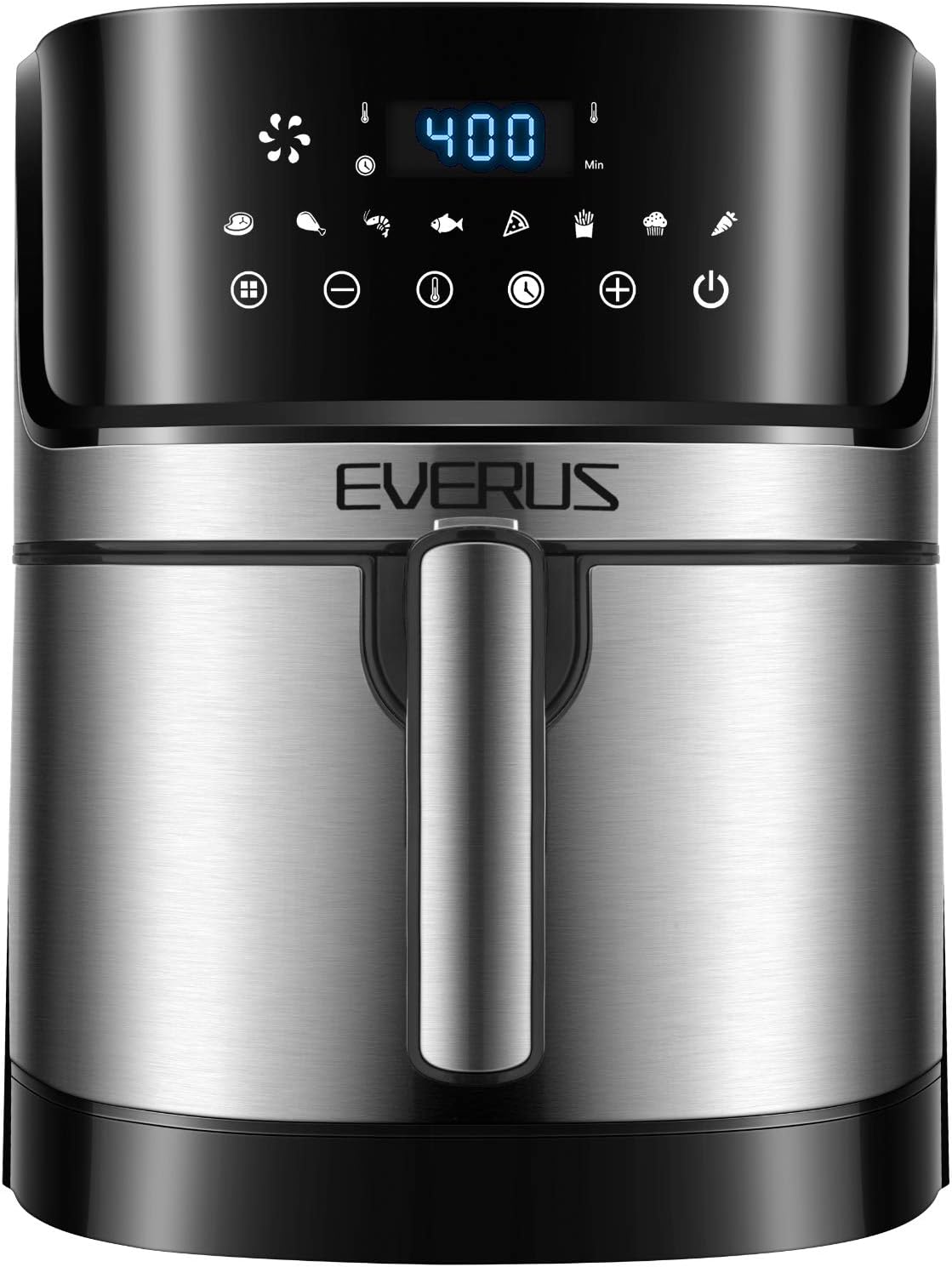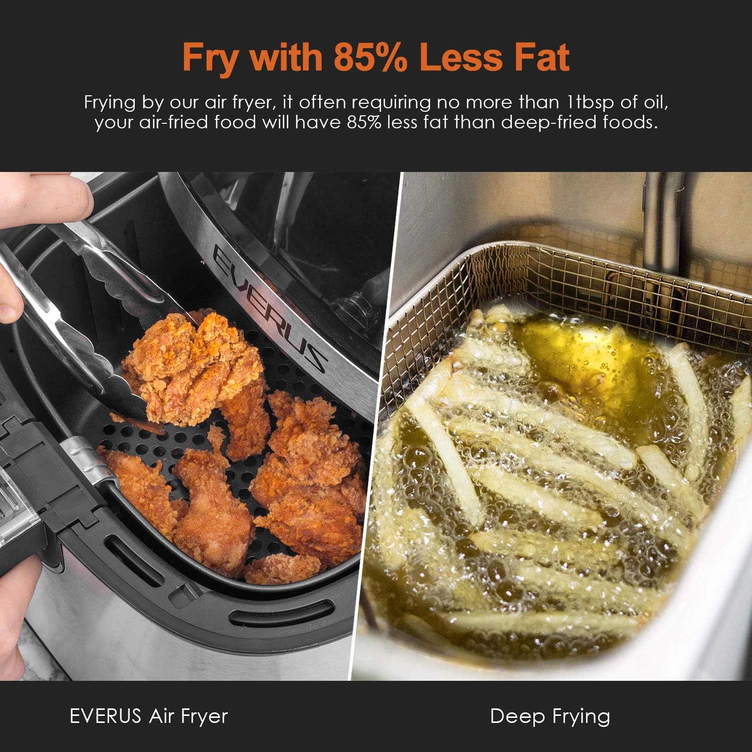 Air Fryer EVERUS 1700-Watts Hot Air Fryer Oven XL 5.8QT, Stainless Steel Electric Air Fryer Oilless Cooker with 8 Presets, Nonstick Square Basket, 2 Years Warranty, ETL Listed
