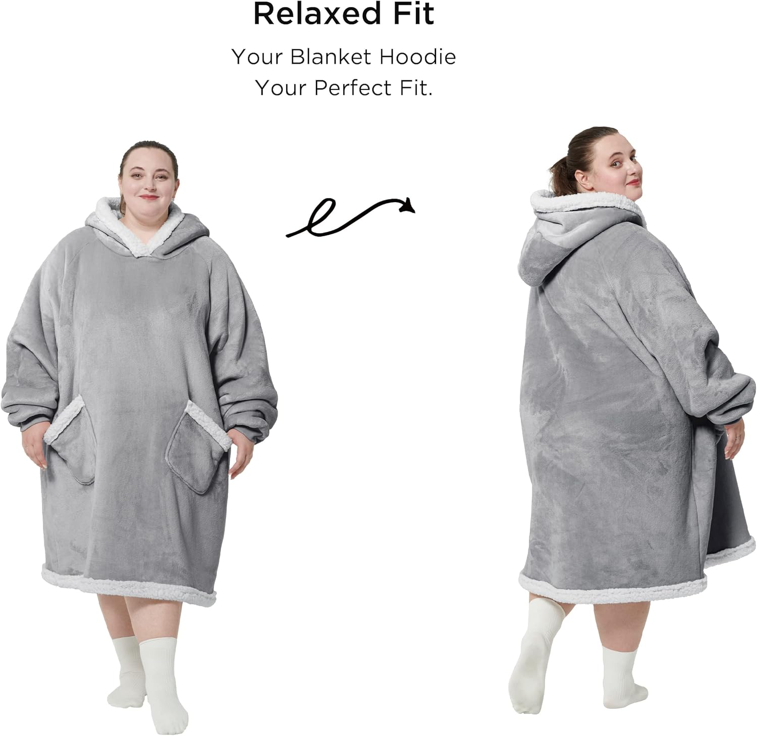 Bedsure Blanket Hoodie, Wearable Blanket for Adults & Kids as Gifts for Women Men, Birthday Gifts for Women Mom Girl Sherpa Oversized Hoodie, Grey, Oversize