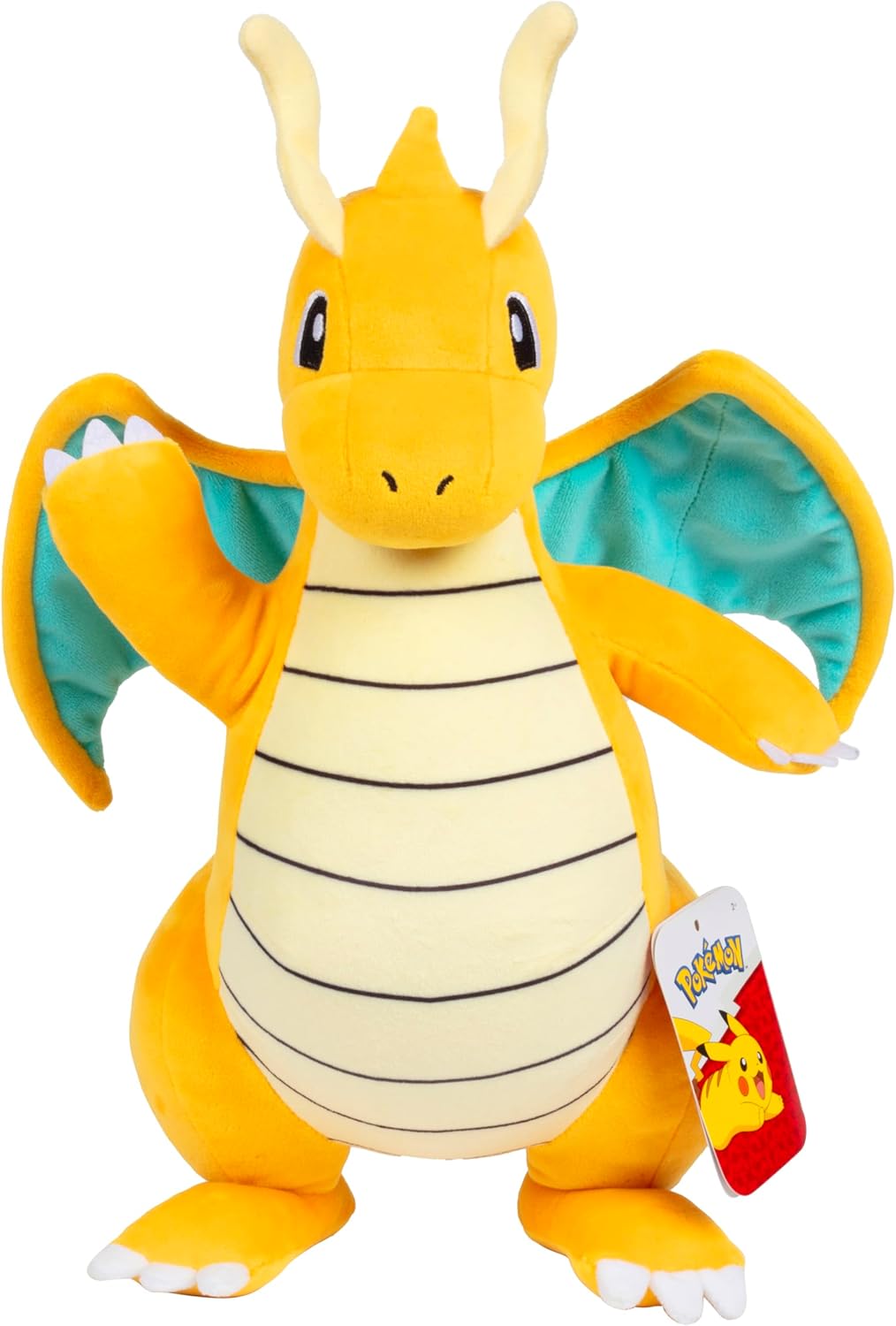 Cute and cuddly 12" Pokémon Dragonite Plush Stuffed Animal is a must have for all Pokemon fans! TThis super soft Dratini and Dragonair evolution plush figure is great to take wherever you go! The plush toy isinspired by Pokémon anime, trading cards, Let's Go!, Detective Pikachu, Sword and Shield, Scarlet and Violet, Nintendo video game series and more! Makes a great gift for kids, boys and girls who love Pokemon. These authentic quality plushie figures are perfect gifts for Christmas, birthdays, Easter, holidays, Valentine's Day, stocking stuffer, basket stuffer and more - Your favorite Pokémon character is waiting for you! Officially licensed Pokémon merchandise by Jazwares. Polyester.