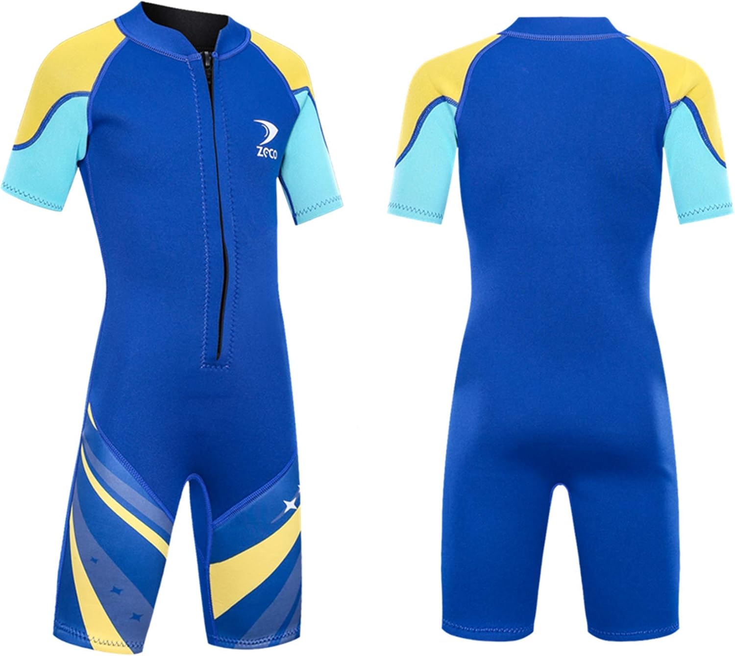 ZCCO Kids Shorty Wetsuit - 2.5mm Neoprene Short Sleeve One-Piece Suit for Boys and Girls -Ideal for Swimming, Surfing, and Diving Water Sports