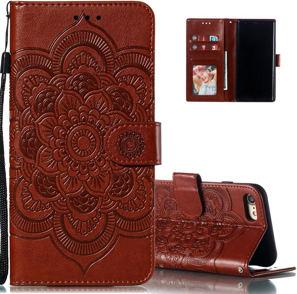 LEECOCO for iPhone 8 Case Mandala Embossing Luxury PU Leather Flip Notebook Wallet Bookstyle Magnetic Stand Card Slot Folio Bumper Protection Cover for iPhone 7" 4.7 Inch Mandala Brown LD