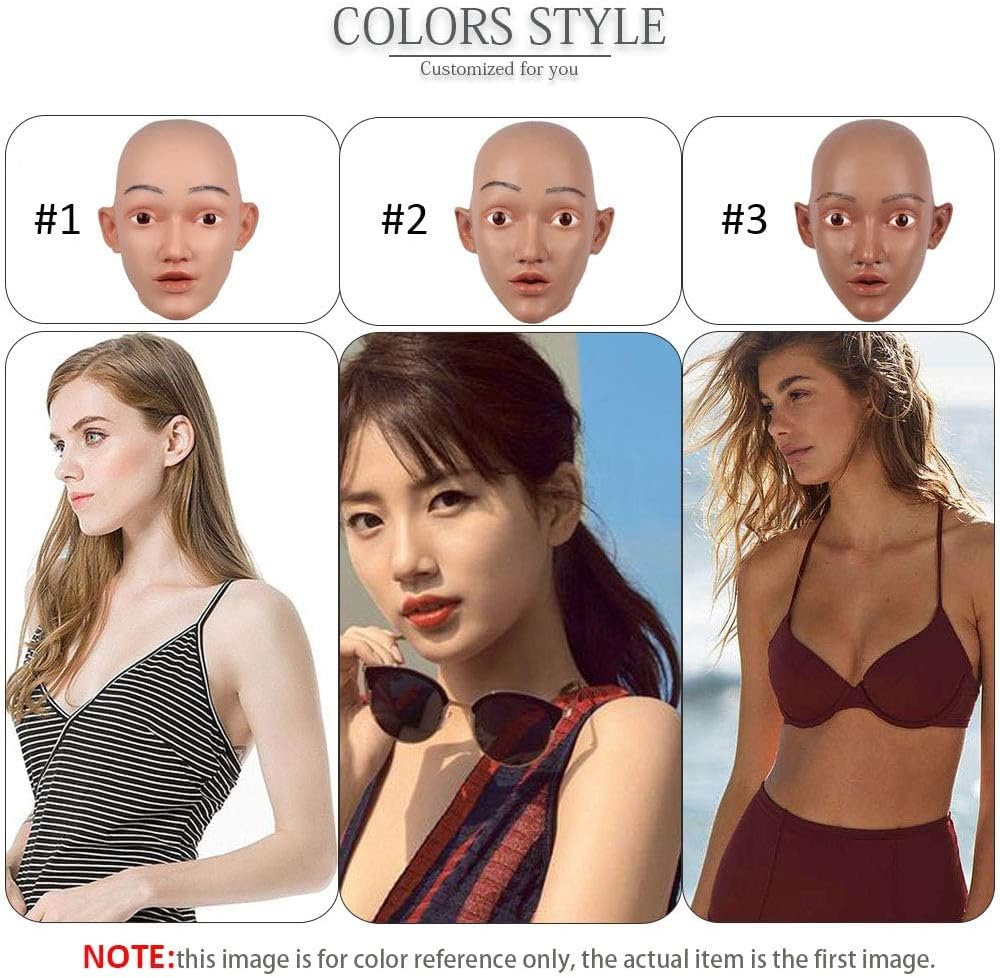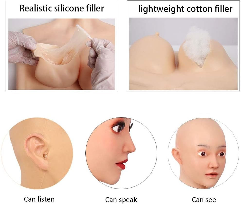 Silicone Face Mask Realistic C Cup Breast Forms Crossdresser Suit with Head for Transgender Cosplay