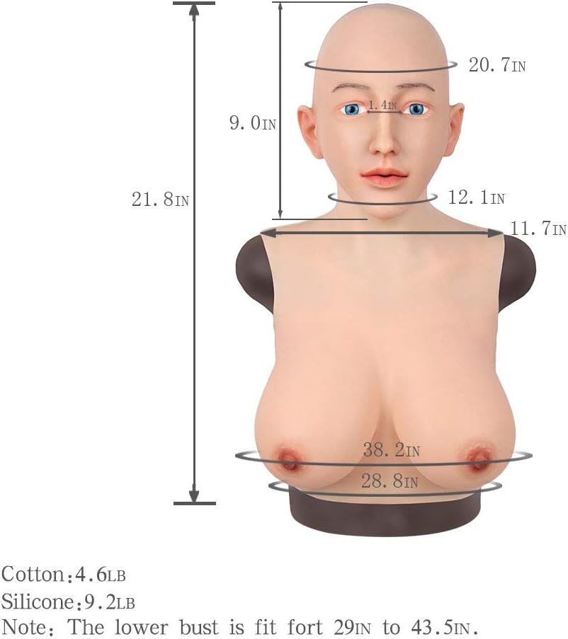 Silicone Face Mask Crossdresser Suit Realistic E Cup Breast Forms for Male to Female Transgender Cosplay Halloween