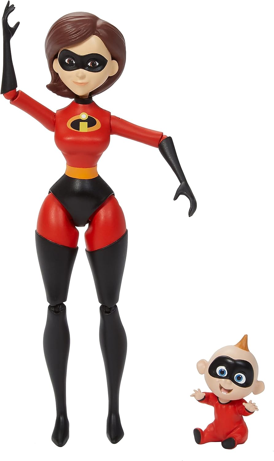 This Disney Pixar's The Incredibles action figure of beloved character Elastigirl includes a baby Jack-Jack figure. Each features high quality detail to inspire kids to recreate exciting movie adventures from the world of Pixar! The Elastigirl figure is 6.6 inches (16.8 cm) tall and comes with Jack-Jack figure in scale at 2.2 inches (5.6 cm) for super family fun. Both are sporting their signature super-suits and have multiple movable joints to duplicate signature actions and dynamic poses. Pixar lovers can mix and match with other figures to build a world of play or create a unique showcase! Each figure pack sold separately, subject to availability. For kids and collectors ages 3 years and older. Colors and decorations may vary.
