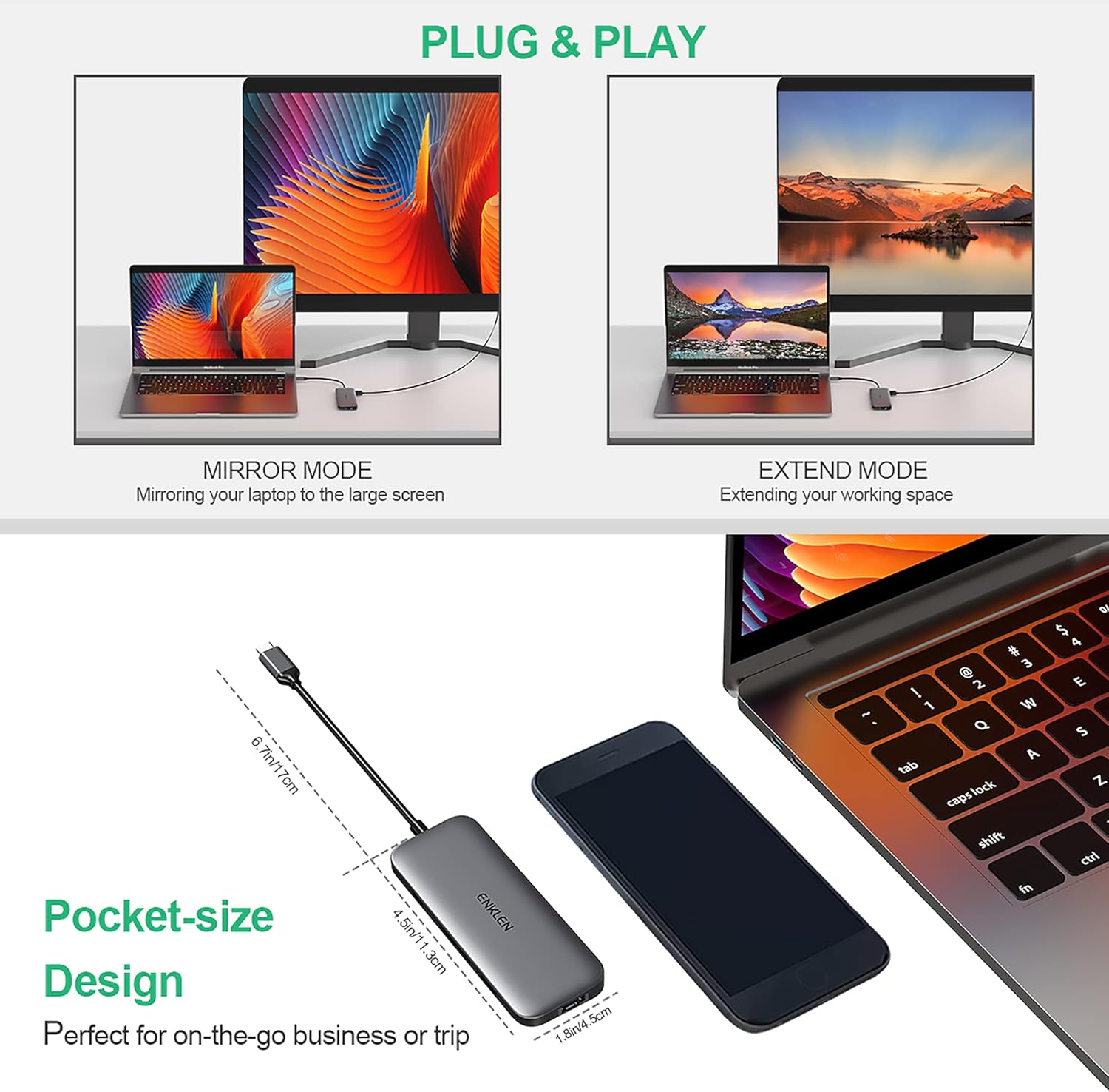 [SUPREMELY PORTABLE] Compact size and sturdy construction make it easy to bring this USB-C hub with you anywhere, just toss it into your bag and go. On arrival, simply connect the hub to your USB-C laptop via a single cable to create the ultimate workstation.