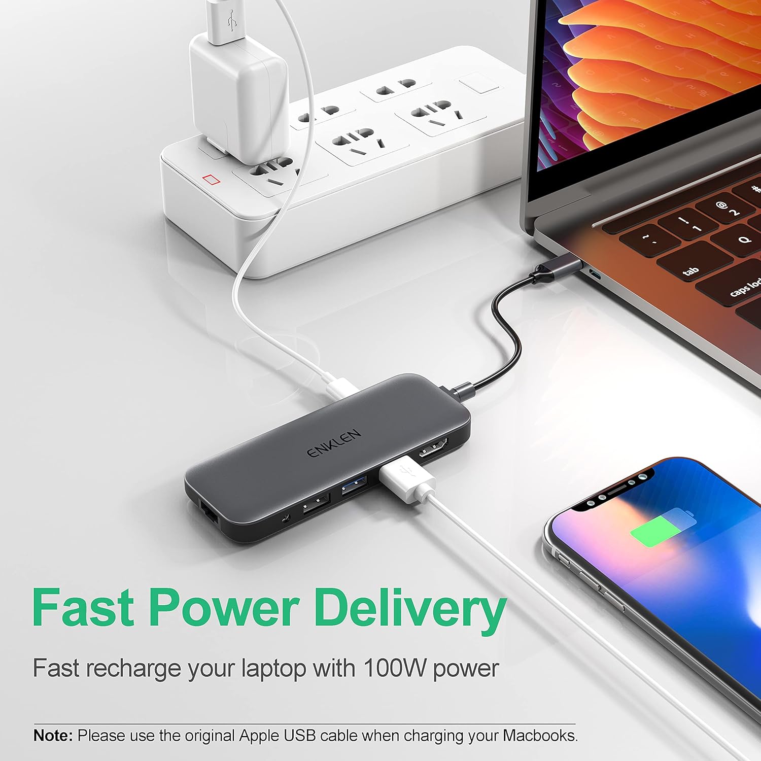 [Fast PD Charging & 3.5mm Audio/Mic] Support Power Delivery charging at Max 100W. This multi-port USB C adapter has a Type-C pass through female port by which you could securely charge your laptop while connecting multiple peripherals.