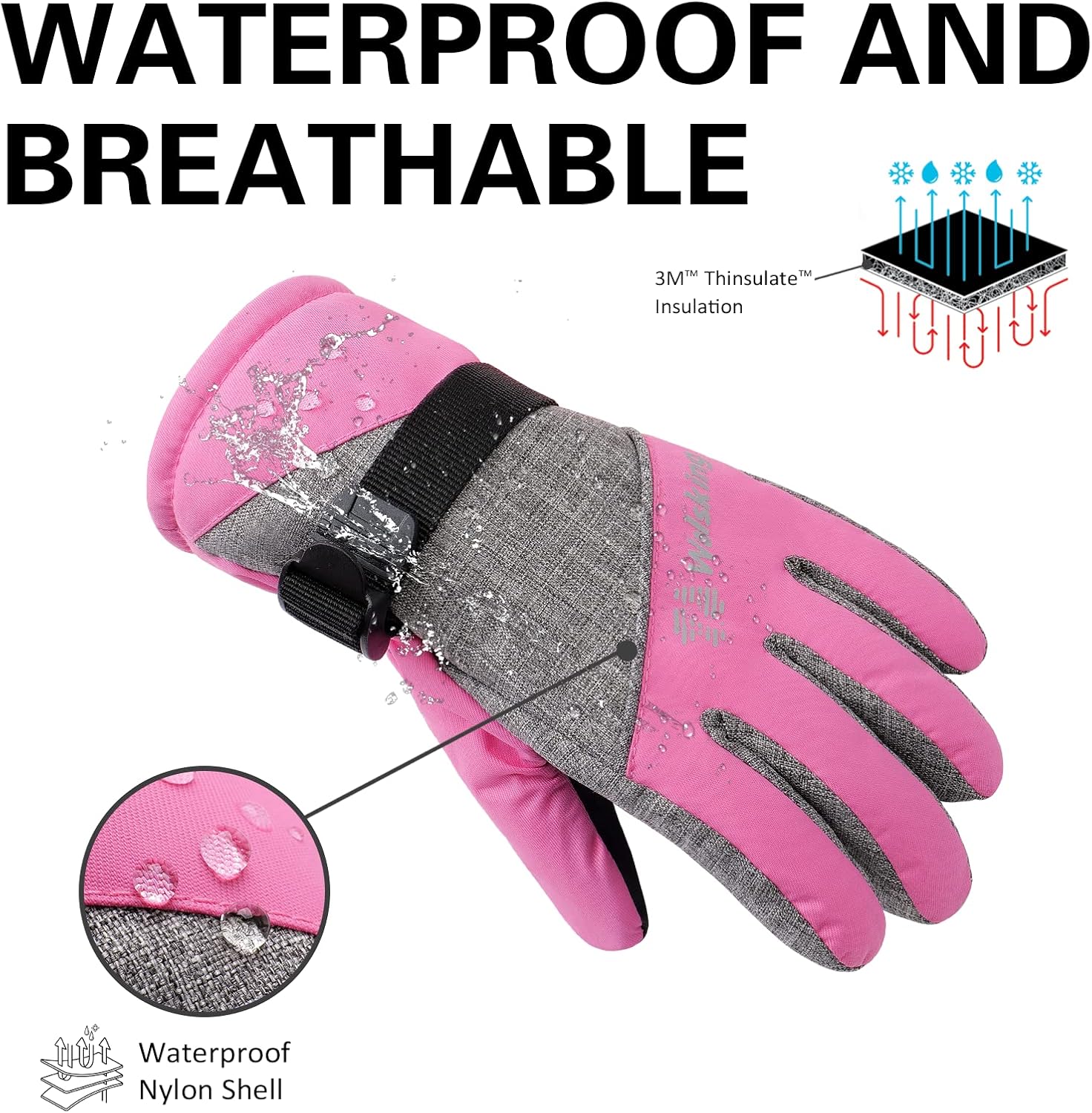 Guantes de Invierno para Niños - Guantes de Nieve Impermeables de Invierno para Esquiar Calentitos con Aislamiento 3M Thinsulate para Snowboard al Aire Libre para Niños y Niñas