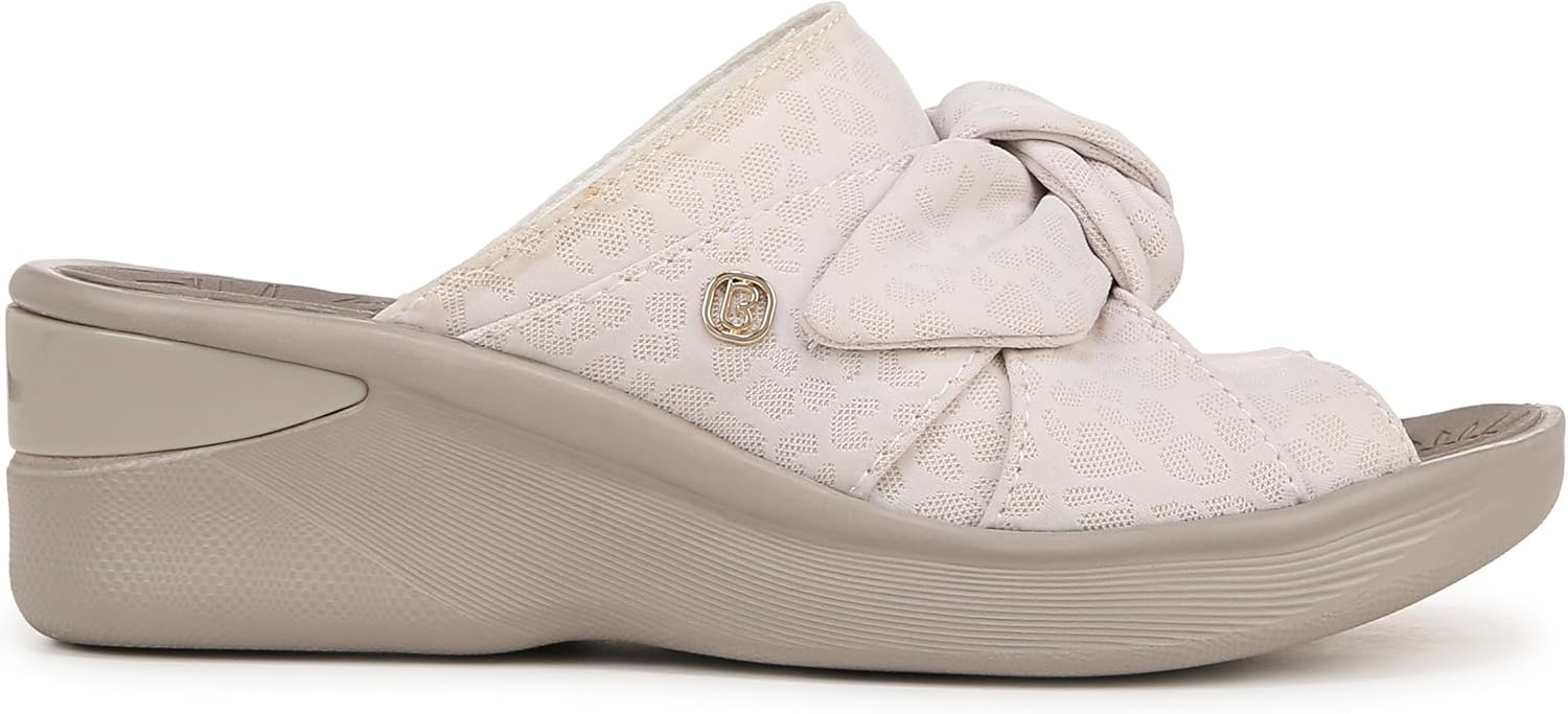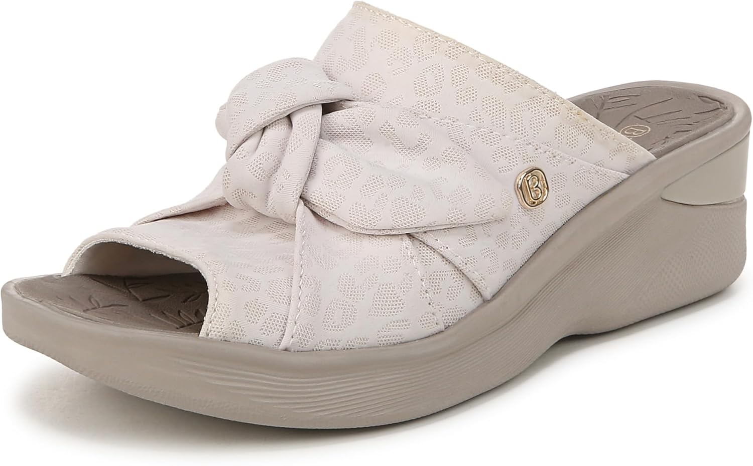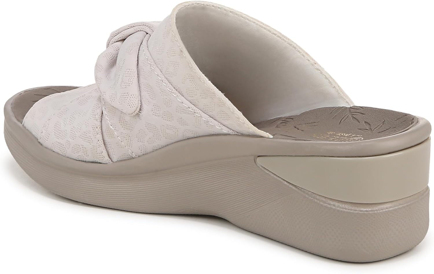 You won't be able to stop smiling every time you slip on this crazy-comfy slide sandal. Stretch fabric upper in a casual sandal style with an open toe. Knotted bow detail. Slip-on fit. BZees cloud technology: welcome to cloud 9Dynamic stretch uppers: free and natural movement is finally here. Designed so you'll feel weightless, energized and free. Free foam footbeds: your feet need beds just as much as the rest of your body does. Air-infused outsoles: you’ll feel like you’re walking on, well, you get the idea. Machine washable: toss ‘em in the wash and you’re good to go. 2 inch heel.