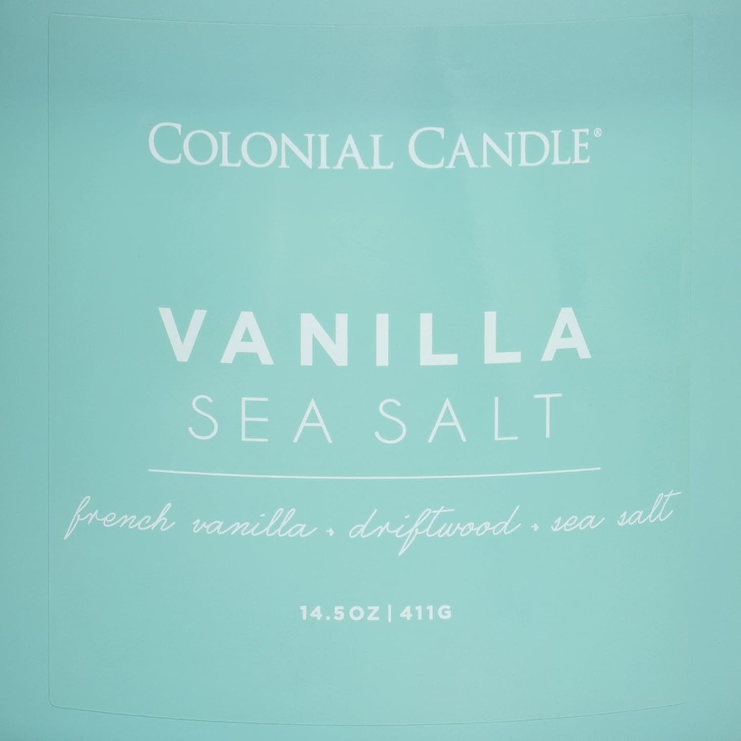 Colonial Candle Vanilla Sea Salt Scented Candle, Pop of Color Collection, 3 Wick, Blue, 14.5 oz - Up to 60 Hours Burn