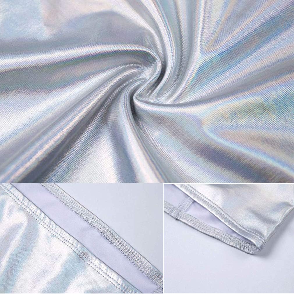 Women's Metallic Shiny Off Shoulder Crop Top + Silver Skirt Two Piece Rave Outfits Set
