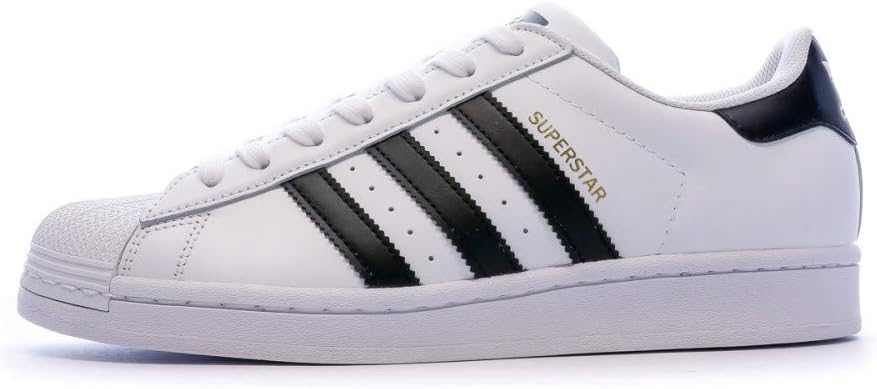 El zapato Adidas Superstar está hecho con una parte superior de cuero suave. Tiene un estilo de cierre con cordones para un ajuste ajustado. Cuenta con una punta protectora de goma y la lengüeta y el cuello acolchados proporcionan amortiguación adicional. La entresuela de EVA es ligera y la suela de goma es muy duradera. Plantilla OrthoLite: absorbente de humedad, antibacteriana y acolchada.