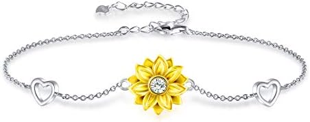 Pulseras SNZM para mujer, plata de ley 925, con forma de girasol, cadena ajustable con forma de corazón, eslabón para cumpleaños, día de San Valentín, joyas de girasol, regalos para mujer/hija/novia