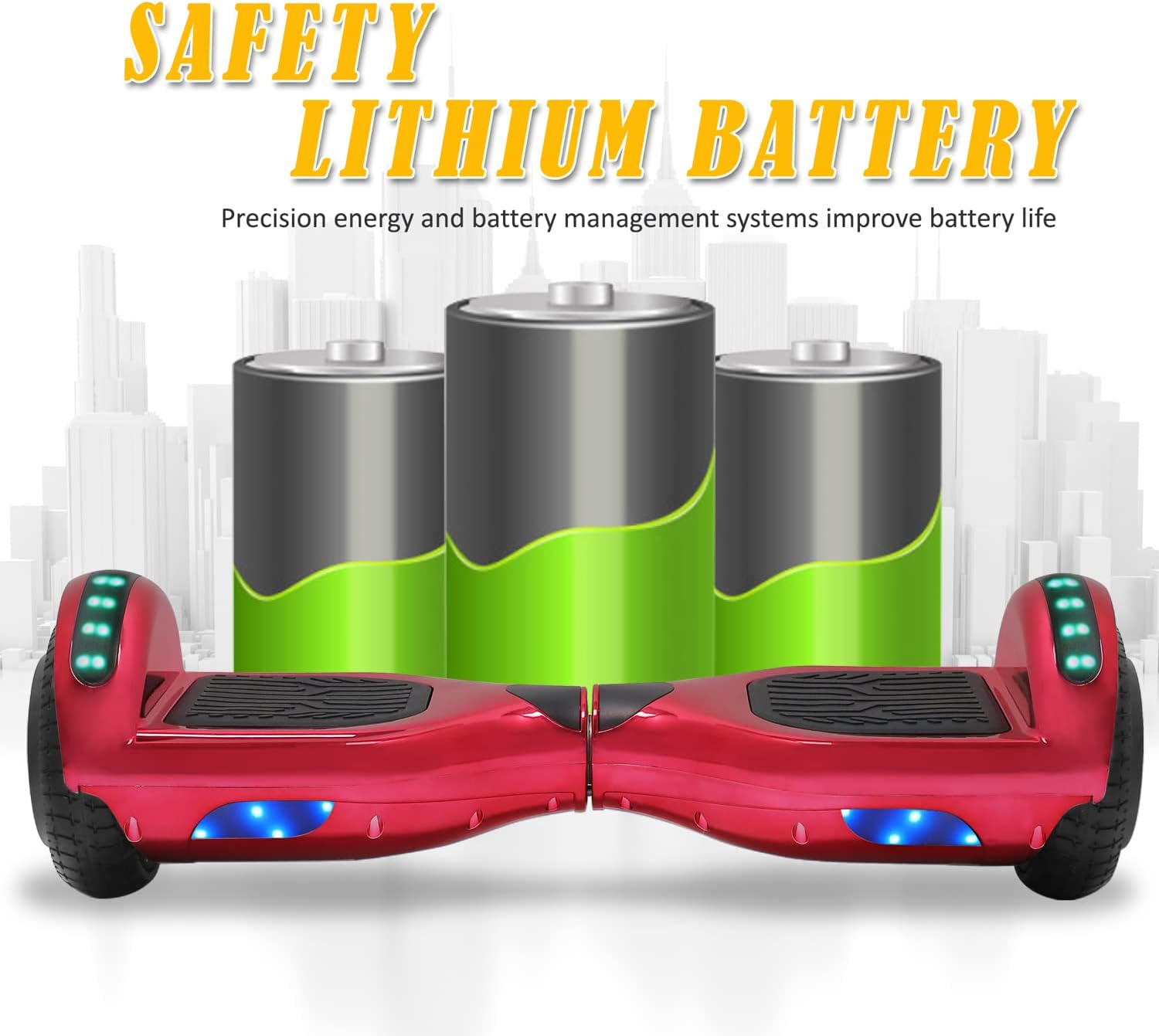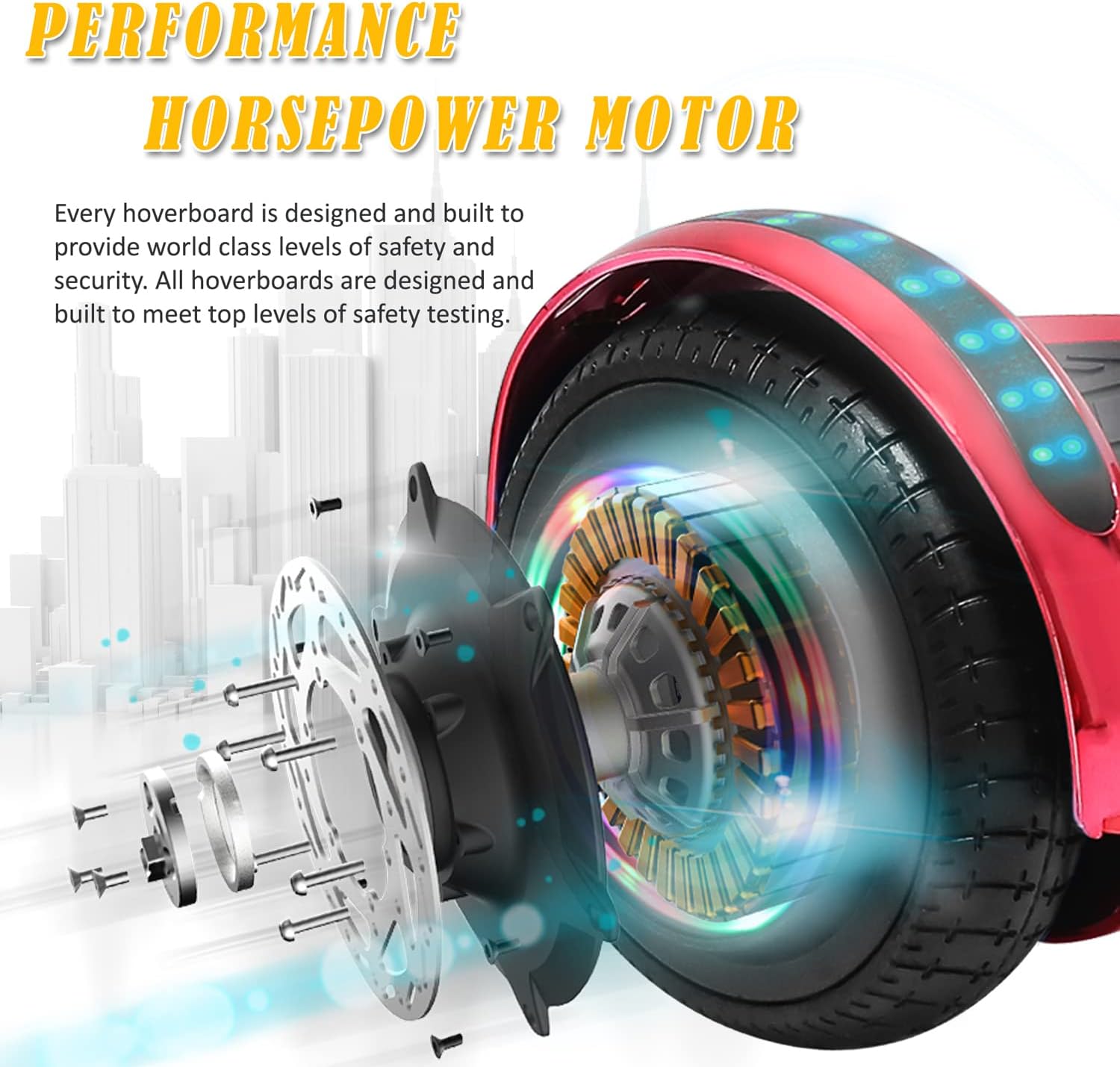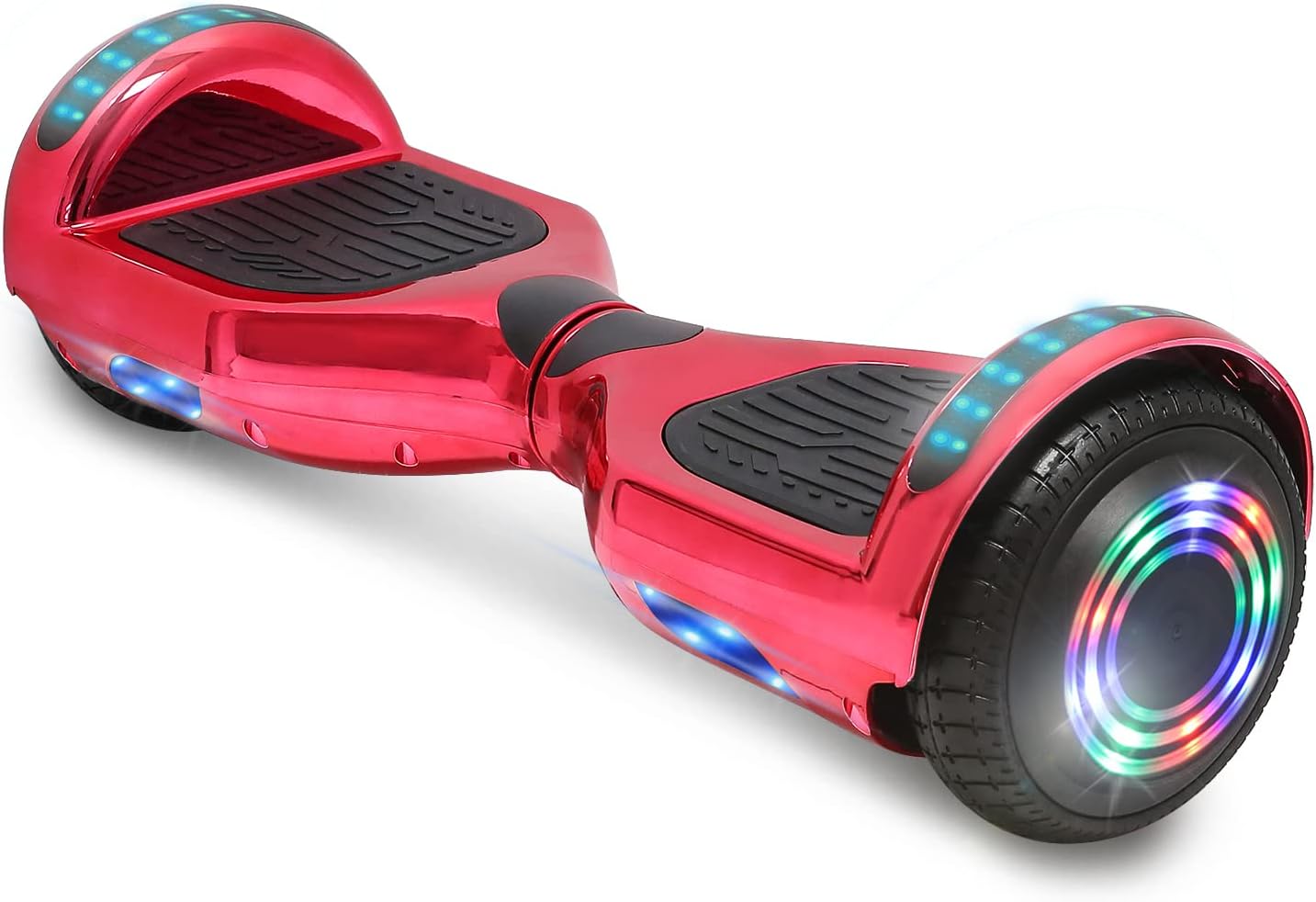 Electric Hoverboard Self Balancing Scooter for Kids and Adults Hover Board with 6.5" Wheels Built-in Bluetooth Speaker Bright LED Lights UL2272 Certified (Chrome Red),QY-ET2