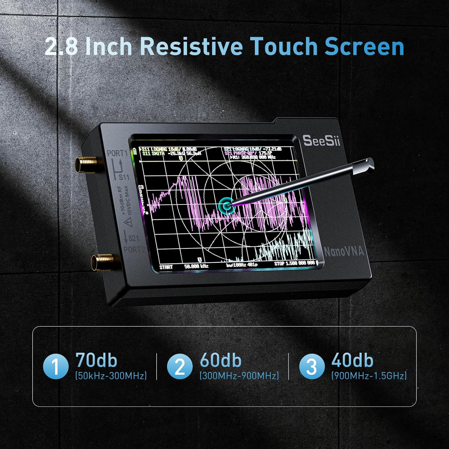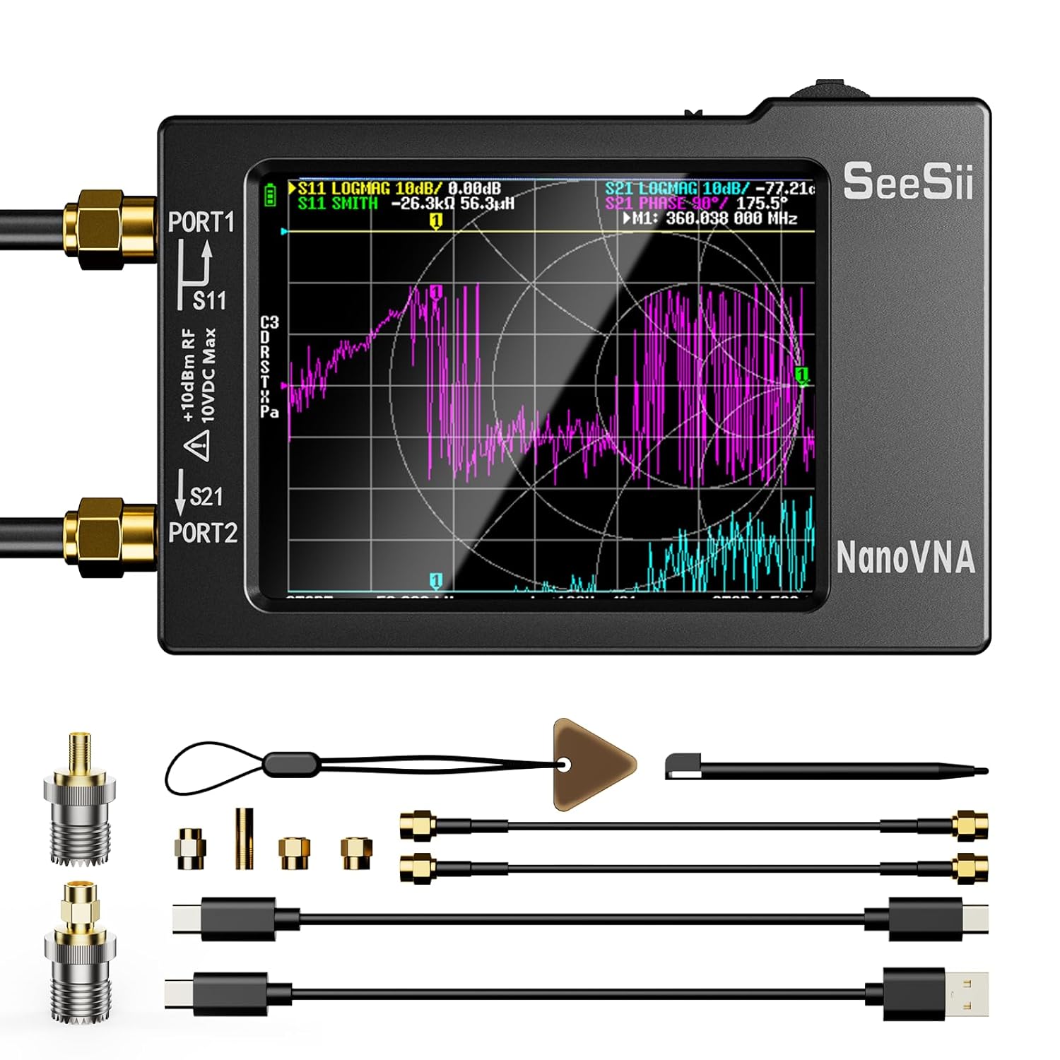 SEESII Nanovna-H Vector Network Analyzer with SMA Adapter, HW3.6 10KHz-1.5GHz MF HF VHF UHF Antenna Analyzer, Measuring S Parameters, Voltage Standing Wave Ratio,Phase,Delay,Smith Chart
