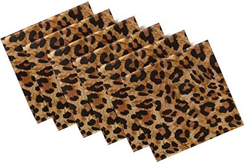 Stylish Leopard Skin Print Cloth Napkins, Set of 6 20 x 20 Inch Soft & Comfortable Polyester Dinner Napkin for Family, Restaurant, Weddings, Parties