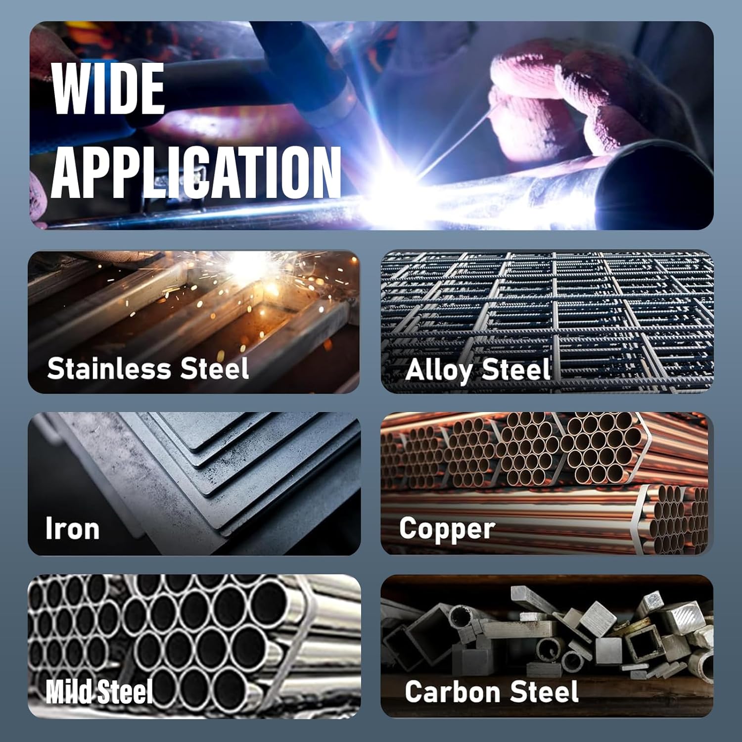Versatile 3-in-1 Welder:equipped with TIG torch,ground clamp,electrode holder,and welding tongs,this machine is designed for welding various metals,including stainless steel,mild steel, copper,and more