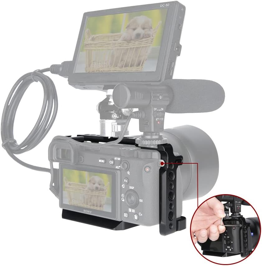[COMPABILITY] Niceyrig cage 340 is especially designed for Sony A6600, which protects your camera body and offers mounting options to attach accessories attachments. With the cage, you still have access to the SD card slot, battery compartment and all camera controls