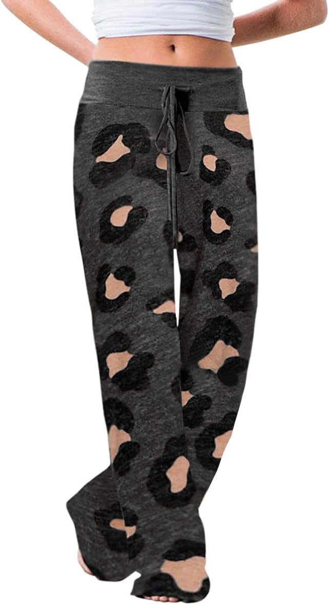 AMiERY Women's Comfy Casual Pajama Pants Floral Print Drawstring Palazzo Lounge Pants Wide Leg