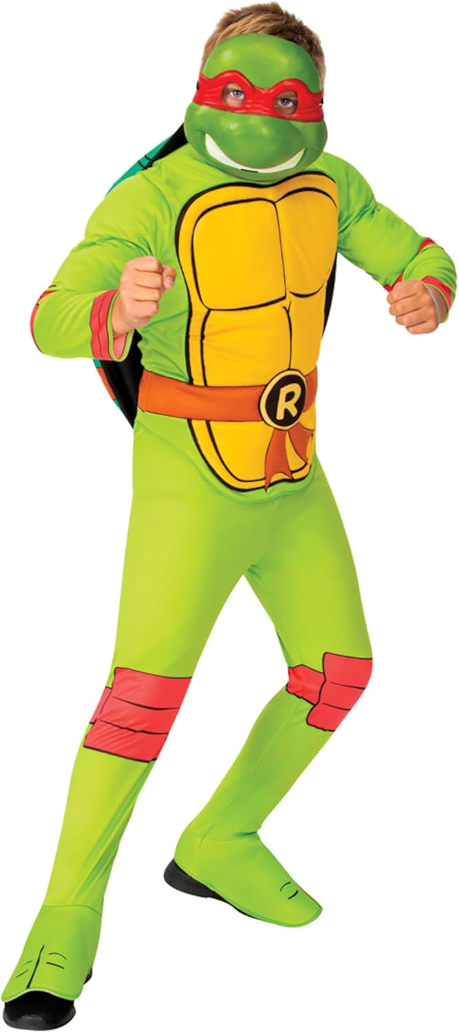 DISEÑADO OFICIALMENTE Clásico Retro Disfraz de Tortugas Ninja para Niño, busca la marca registrada en la etiqueta y el empaque para asegurarte de que has recibido un artículo auténtico y probado de seguridad. Traje de lujo con parte superior, pantalones con cubiertas para botas, caparazón rellenable y media máscara. Sea cual sea la razón o la temporada, Rubies, el mayor diseñador y fabricante de disfraces y accesorios del mundo, se complace en ofrecerle a usted y a su familia los conceptos más recientes e innovadores en disfraces y mascaradas. Enfocado en la familia y con sede en los EE. UU. desde 1951, Rubie’s tiene disfraces y accesorios clásicos y licenciados en tamaños y estilos para toda la familia.