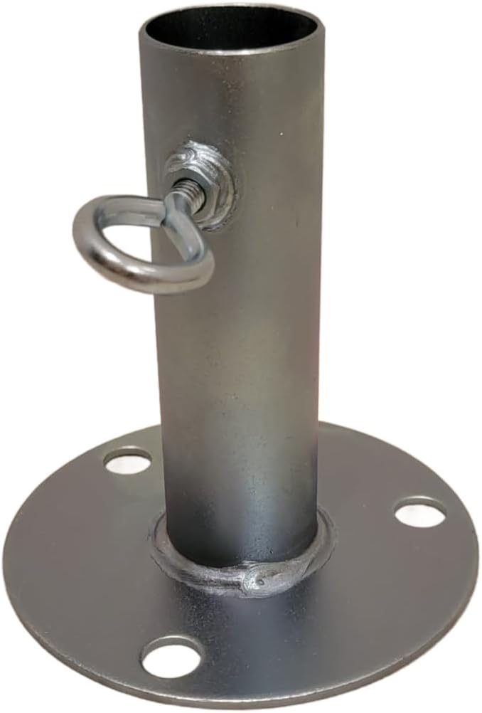 Canopy Pole Foot Pad. Equipped with Adjustable Eye-Bolt Tightening Screw. 1/16" Thick Steel. Tri-Hole Foot Pad Design for Hardware Ground Anchoring.
