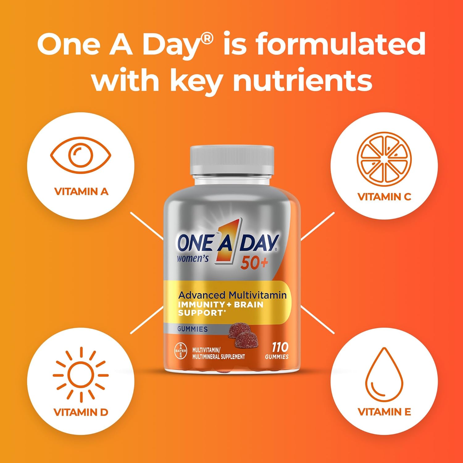 One A Day Women’s 50+ Gummies, Multivitamínico Avanzado para Mujeres, Vitaminas para Apoyo Cerebral e Inmunidad, Multivitamínicos con Super Complejo B8, 110 Cuenta