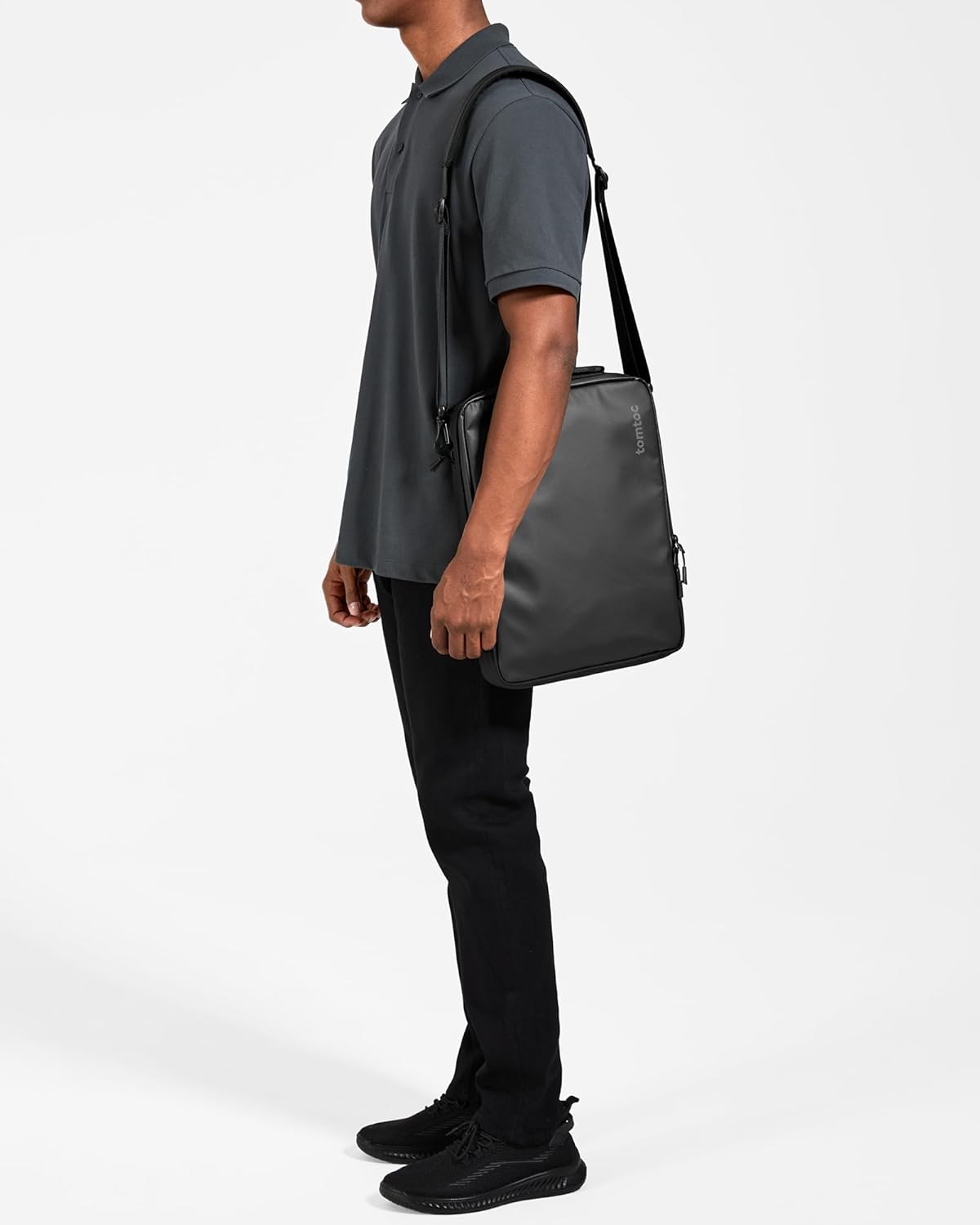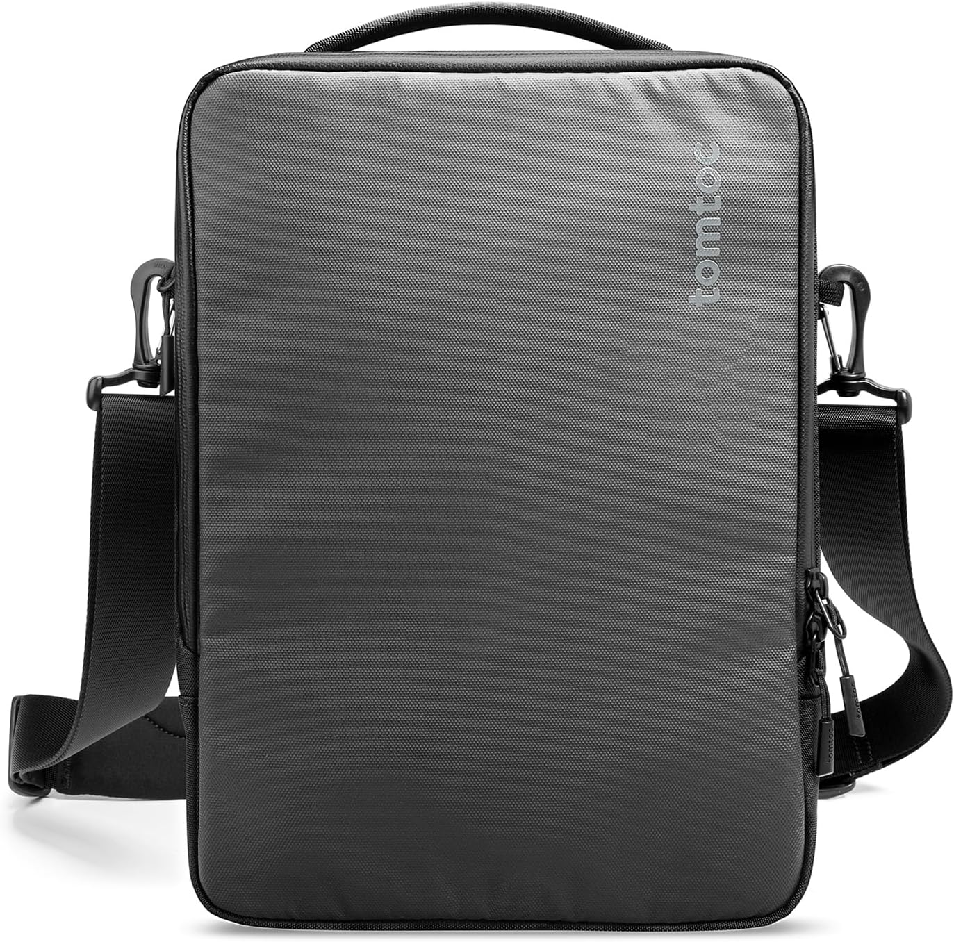 Durabilidad de alta resistencia: Nylon balístico CORDURA de estándar militar con cremalleras YKK y hebillas impermeables proporciona una increíble robustez y durabilidad. Los materiales robustos resisten el desgarre y la abrasión, lo que ofrece un uso duradero y seguro. Protección CornerArmor en 4 esquinas. Proveedores líderes de la marca. Cremallera YKK y superficie repelente al agua. Múltiples formas de transporte cómodo. Bolsillo grande organizado Para combatir las situaciones más difíciles, desde caídas hasta golpes y vibraciones, tomtoc propuso el concepto de protección 360 y diseñó la bolsa para portátil con Tecnología CornerArmor, bordes de alta resistencia y acolchado de espuma de doble densidad. Pasó la prueba de caída de estándar militar mientras mantiene un diseño elegante. La bolsa para portátil tomtoc para hombro cuenta con un compartimento principal para tu portátil y un exclusivo bolsillo delantero patentado con muchos bolsillos para accesorios como iPad, bolígrafo, cargador, banco de energía, ratón y otros elementos esenciales. Cuenta con un cinturón de hombro desmontable y ajustable con almohadilla de hombro estable para una comodidad ergonómica superior; la asa superior y una asa lateral te permiten llevar tu portátil y accesorios de forma conveniente durante mucho tiempo. Dimensiones del compartimento para portátil: 12.80" x 9.14" x 0.9" Compatible con la mayoría de portátiles de 13 a 14 pulgadas y accesorios 14-inch New MacBook Pro M3 Chip, M3/Pro, M3/Max 2023 13-inch MacBook Air M2/A2681, M1/A2337, A2179, A1932, A1466, A1369 (2022-2009) 13-inch MacBook Pro M2/A2686, M1/A2338, A2251, A2289, A2159, A1989, A1706, A1708, A1502, A1425 (2022-2012) 12.9-inch iPad Pro Surface Book 3/2/1, 13.5-14.4 Inch Microsoft New Surface Laptop Studio 5/4/3/2/1 Surface Pro 9/8/X/7+/7/6/5/4/3/2/1 con Signature Keyboard/Type Cover Dell HP Acer Asus Lenovo HUAWEI 13-14 inch laptops Dimensiones externas: 13.40" x 9.92" x 2.76"; Bolsillo delantero: 12.80" x 9.14" x 1.6"; Peso:0.93 LB Material: Nylon balístico CORDURA Cremallera: YKK impermeable 1 x Bolsa para hombro para portátil de 13-14 pulgadas