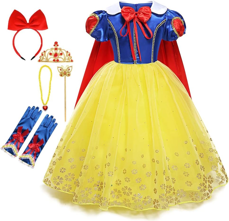 HIHCBF Girls Princess Snow White Costume Birthday Christmas Party Halloween Carnival Fancy Dress Up Outfits (w/Accessories)
