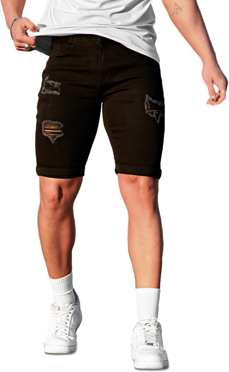 GINGTTO Mens Denim Shorts Ripped Skinny Stretch Jean Shorts Men