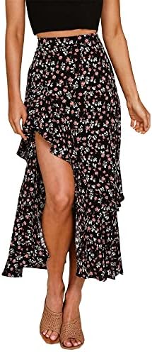 BTFBM Women 2025 Summer Fall Boho Long Skirts Dress Floral Print Elastic Waist Split Ruffle High Low Beach Maxi Skirt