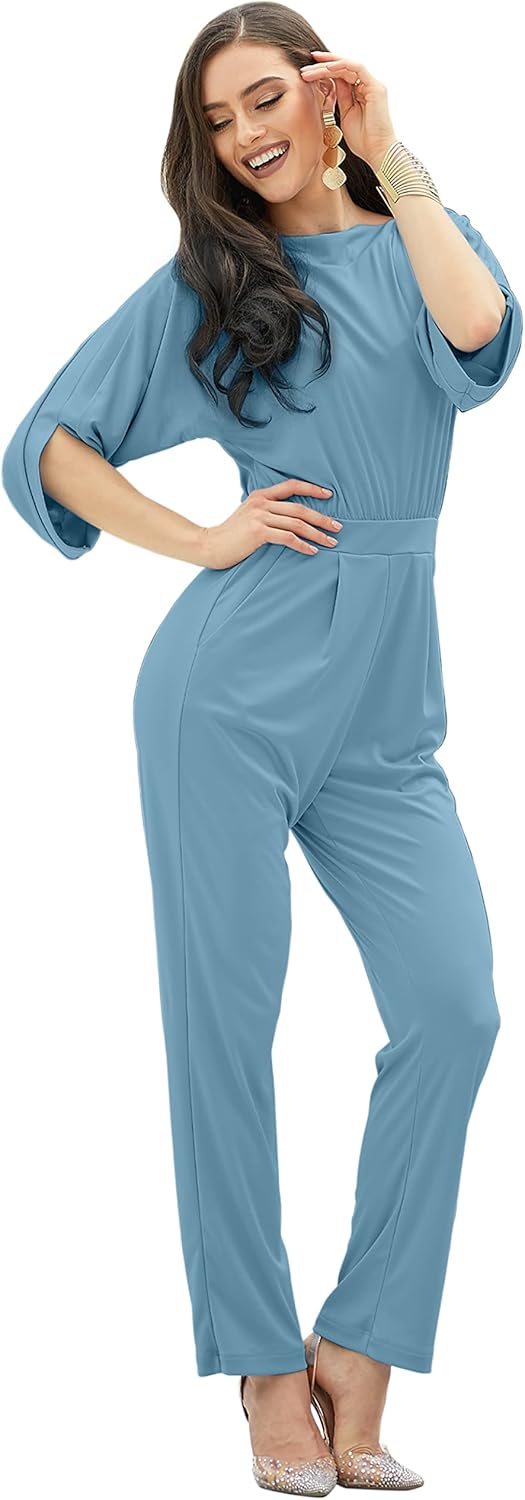 This stunning effortless casual jumpsuit is one of those that everyone must own. You can dress it up for a semi formal pant suit evening look, or pair it with a relaxed hat and sandals for a casual look. Not to mention this stunning jumpsuit is perfect for any occasion and so versatile that you can own it and wear it to your special occasion and event any time. With our wide range of sizes, this simple yet elegant long jumpsuit is the perfect option to wear as a plus size pant suits, maternity jumpsuits as well as pregnancy overall for all body shapes and sizes.Details about the model in the picturesHeight: 5 foot, 9 inches (175cm)Bust: 32 inchesWaist: 26 inchesHip: 38 inchesWearing Size: SmallPlease select your size based on the bust/chest measurements provided belowBust/Chest: (XS) Up to 32.5 inches (S) 32.5-35 inches (M) 35.5-37.5 inches (L) 38-40 inches (XL) 40.5-43 inches (2X) 43.5-47 inches (3X) 48-51.5 inches (4X) 52-55.5 inchesItem Length: The total length is approximately 54-56 inches / 137-142 cmGarment Care: Machine WashableSKU: NT118