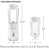 Hamilton Beach Blender portátil para batidos y licuados, 14 oz. Taza de viaje y tapa libres de BPA, cuchillas de acero inoxidable duraderas, licuadora personal, 2 jarras - Blanco (51102V)