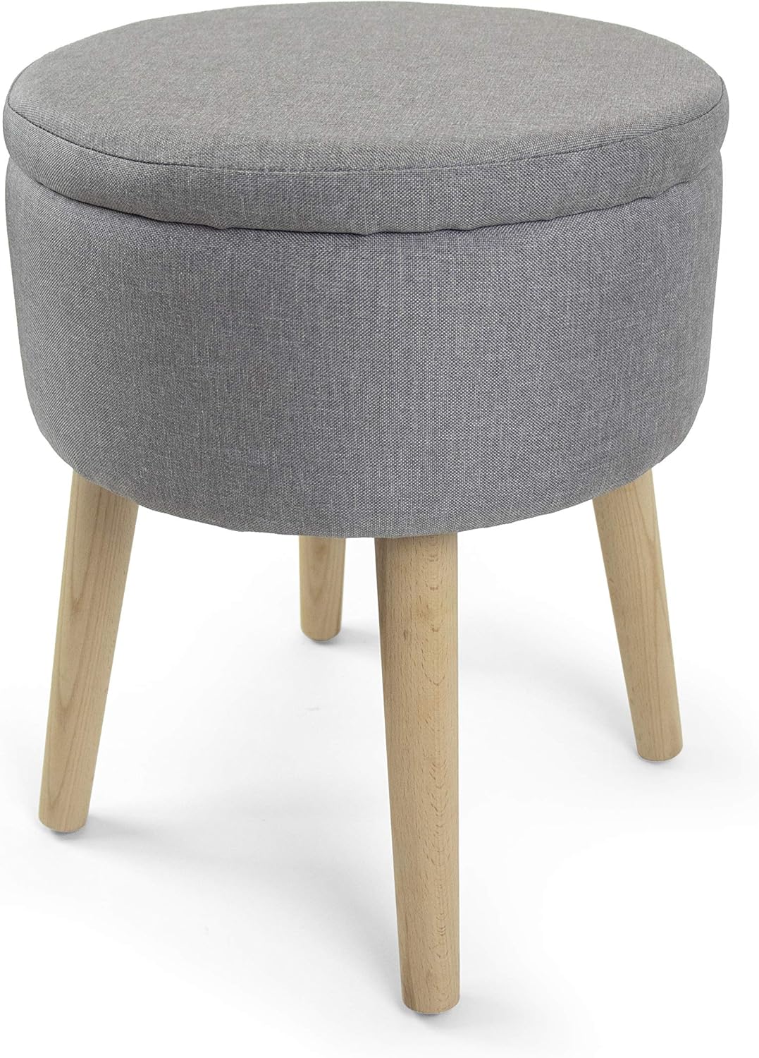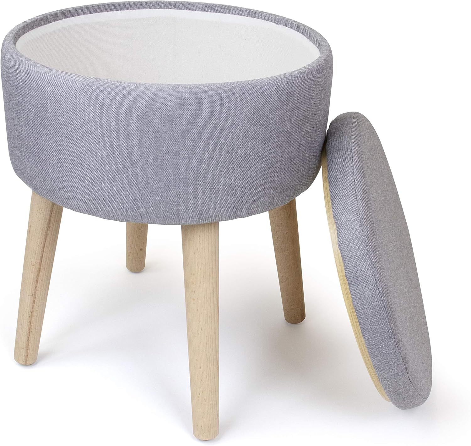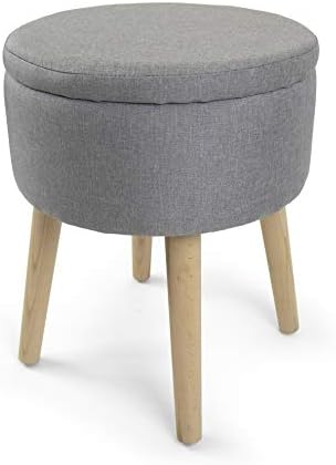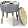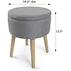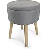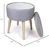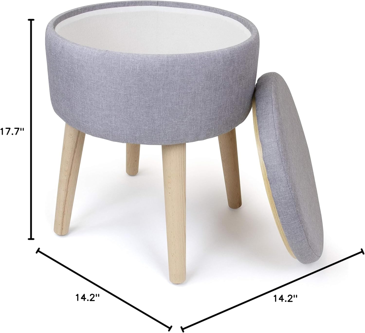 Humble Crew Ashton 14" Round Ottoman with Storage & Tray Lid, Grey Upholstered Seat with Reversible Cushion and Wood Legs, Small Side Table or Footrest