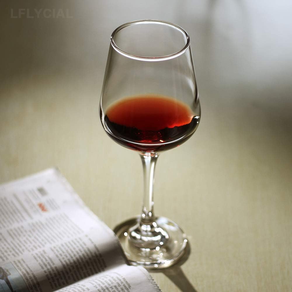 Forma científica: esta copa de vino tiene un diseño clásico y científico. Los taninos del vino continúan maximizando el contacto con el oxígeno de la copa cuando se vierte la cantidad correcta de vino tinto de la botella o decantador hasta que el nivel del líquido alcanza el diámetro máximo de la copa. Debido a que el borde de la copa se hace más pequeño, el aroma del vino se puede recoger bien en el borde de la copa. Pon la nariz en la copa y olerás completamente la fragancia del vino.
