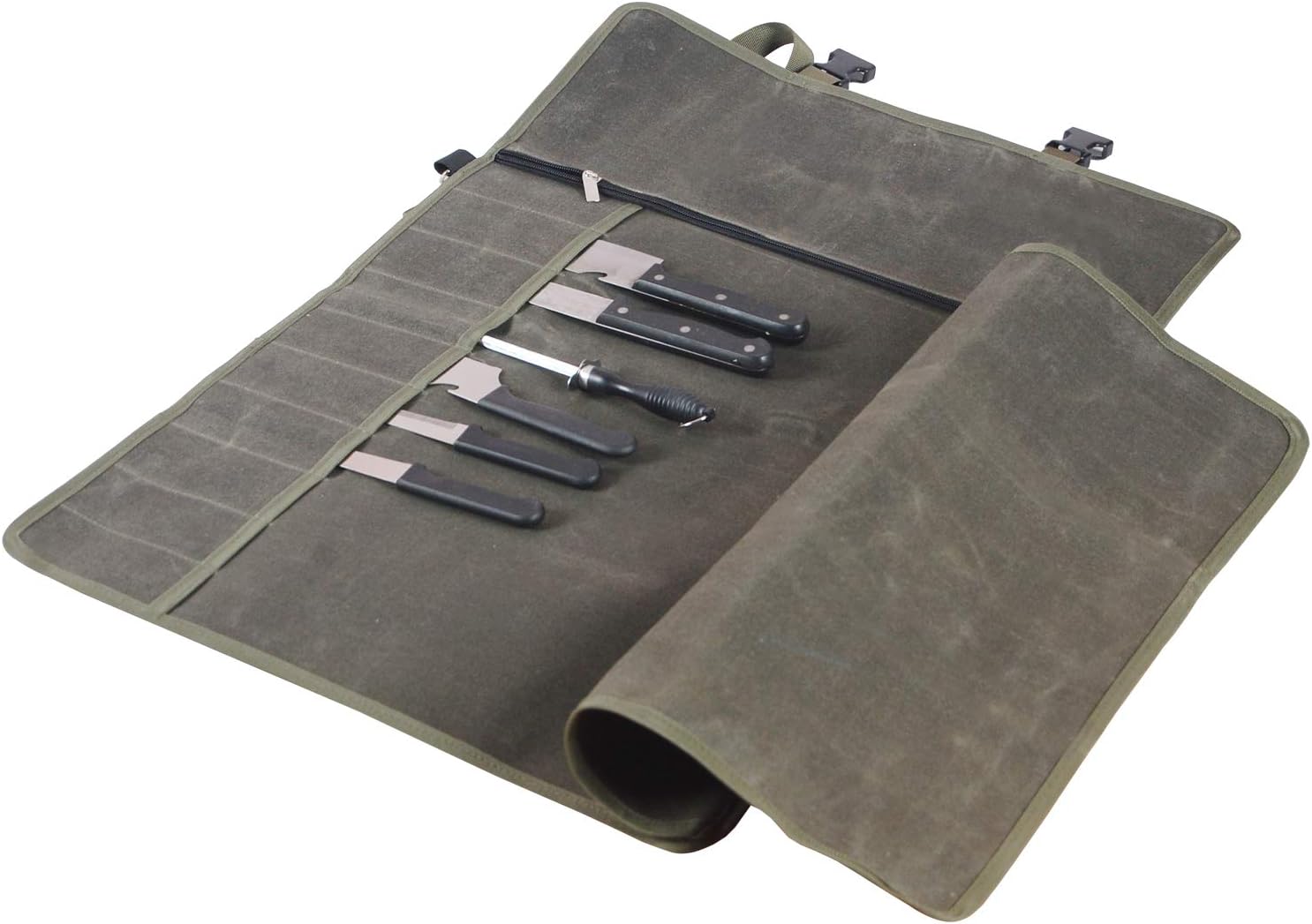 Ruibo Waterproof Waxed Canvas Chef’s Knife Roll Bag With 11 Slots for Kitchen Knife Tools Up To 18.8”/Portable Chef Knife Cases(Army Green)
