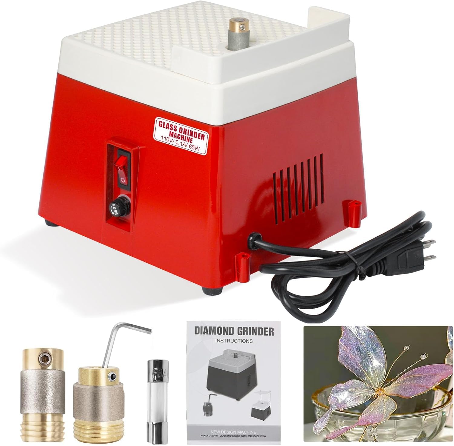 Podoy Stained Glass Grinders, 4200r/min Mini Power Industrial Glass Ceramics Grinding Kit with 5/8" & 1" Diamond Grinder Bit, Red 110V DIY Grinding Tool