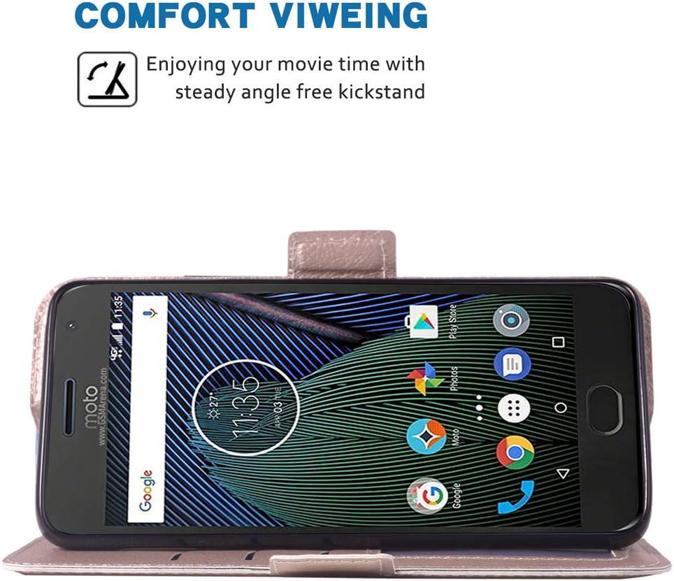 "【Compatible With】: Specially Designed Only for Moto G5 Plus (5.2 inch), NOT compatible with other devices. 【Precise Cut-Out】: Precise cutouts for speaker, camera, flash and other functional ports, allow access to all ports and functions easily, without removing the case. 【Feature】: Our leather case is durable and hard wearing, easily reducing or mitigating scratches, chips and bumps and allowing your phone to look new for longer. The durable soft TPU full-body inner case ensures your phone against drops and bumps."