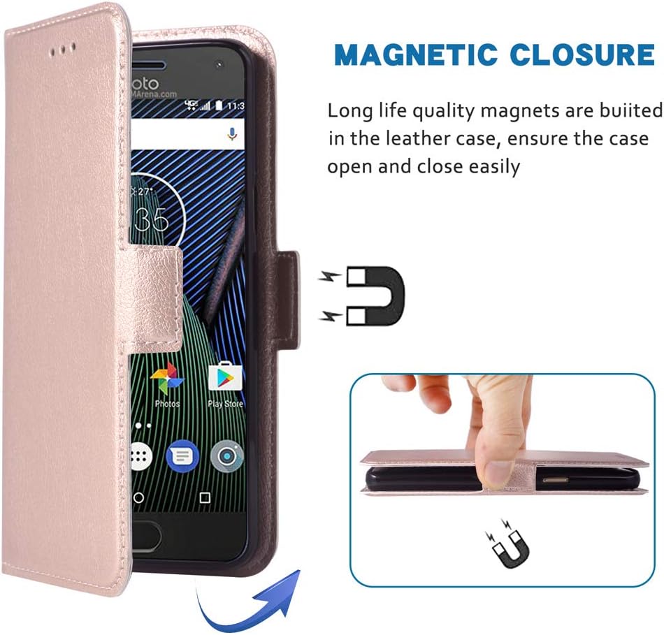 【Phone function】: For Moto G5 Plus wallet cases include 3 card slots, 1 money pocket, 1 with view window can place your favorite photo,full cable/button/speaker access, a magnetic closure and a landscape kickstand.